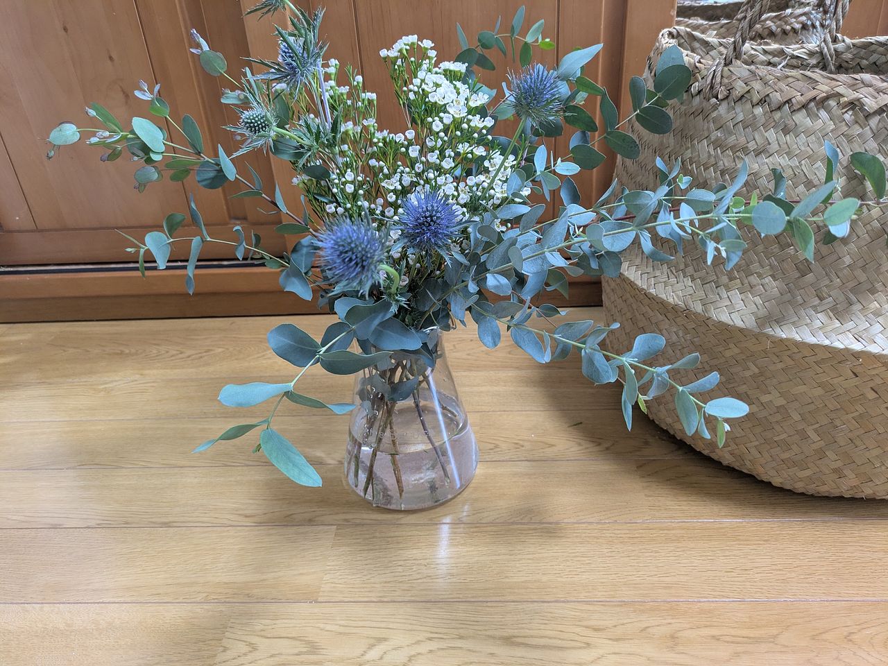 イメージ通りのお花が届きました。 早速スワッグにしようと、部屋の片隅に飾っています。 白い花はつぼみが多かったので、少し水に入れて、花を咲かせてみましたが、つぼみもかわいいので、適当なところでスワッグ行きにしました。 ユーカリの葉の香りはあまり感じられなかったのですが、個人差もあると思います。 部屋の良いアクセントになって、癒されます。