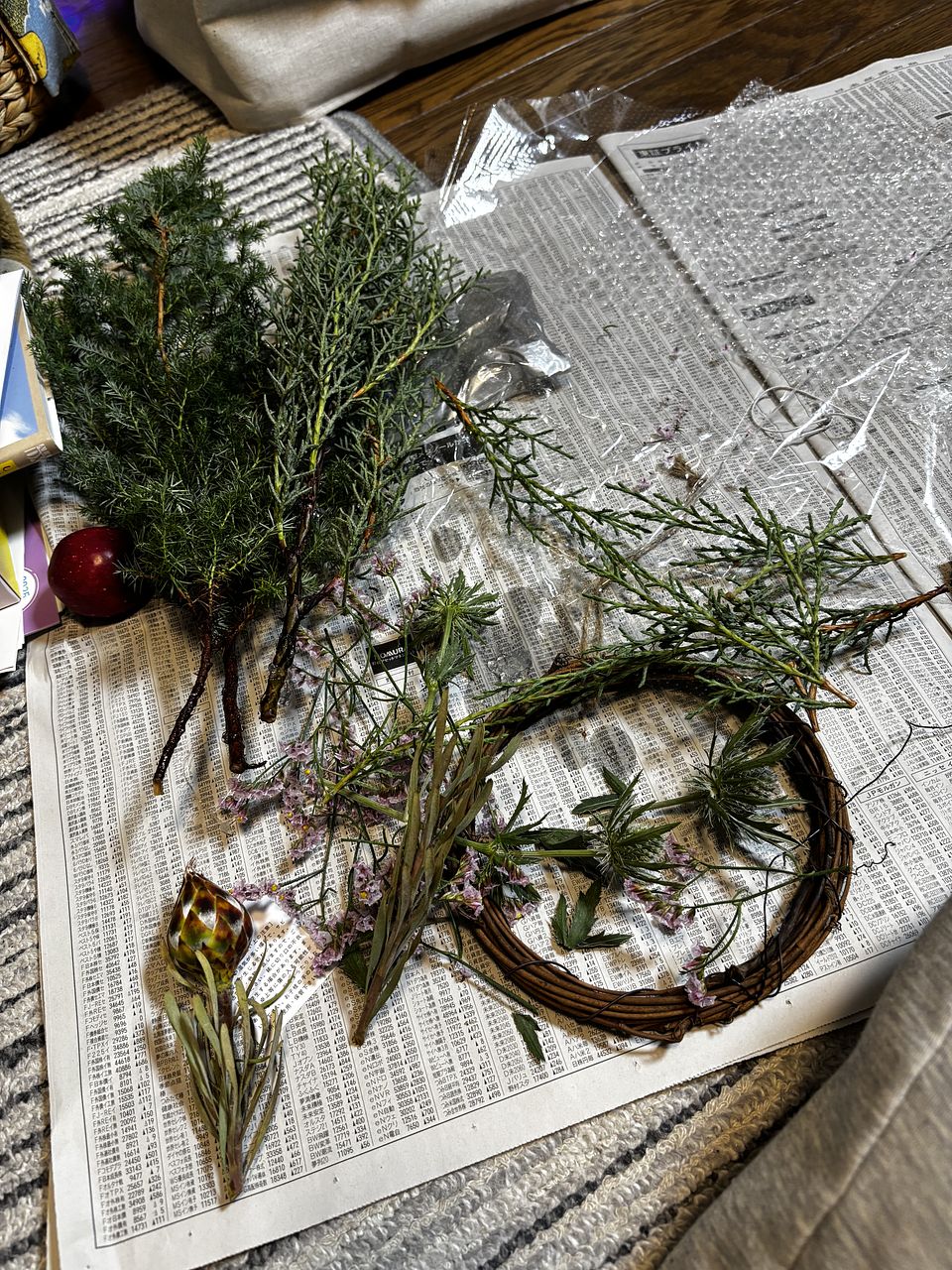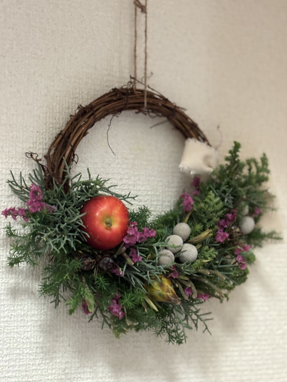 グリーンの香りに癒されながら、素敵なリースが出来上がりました🎄