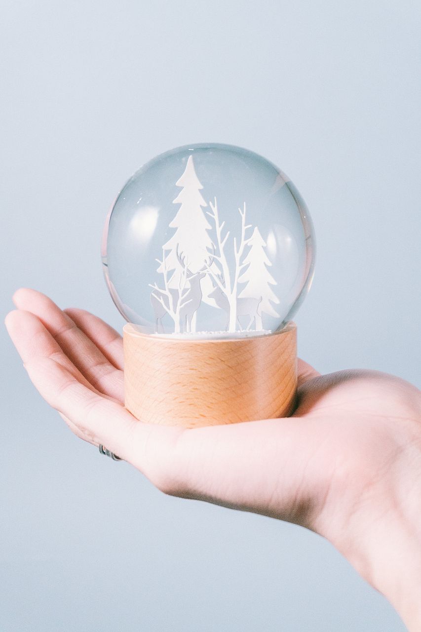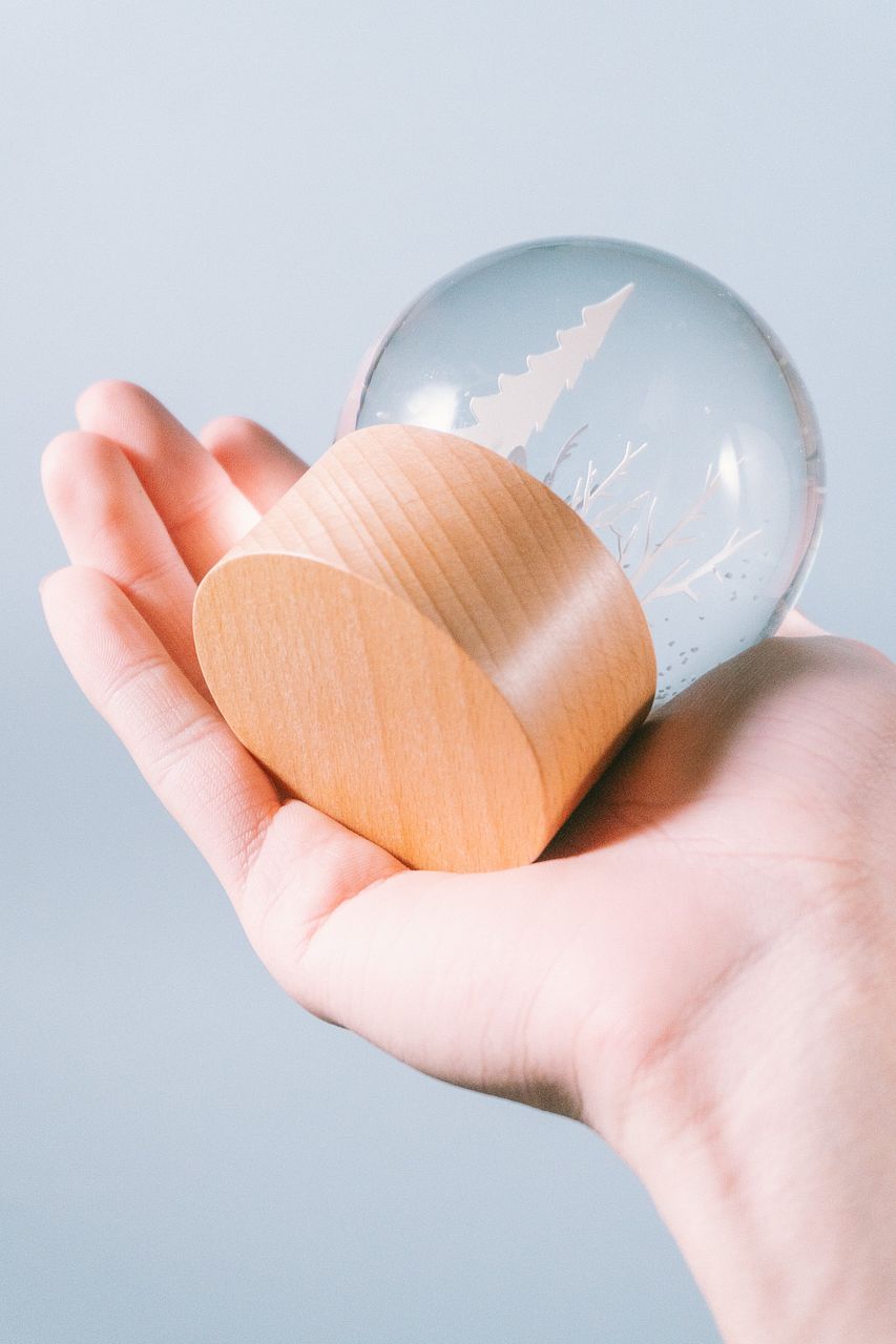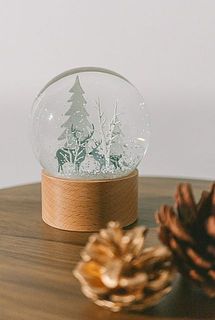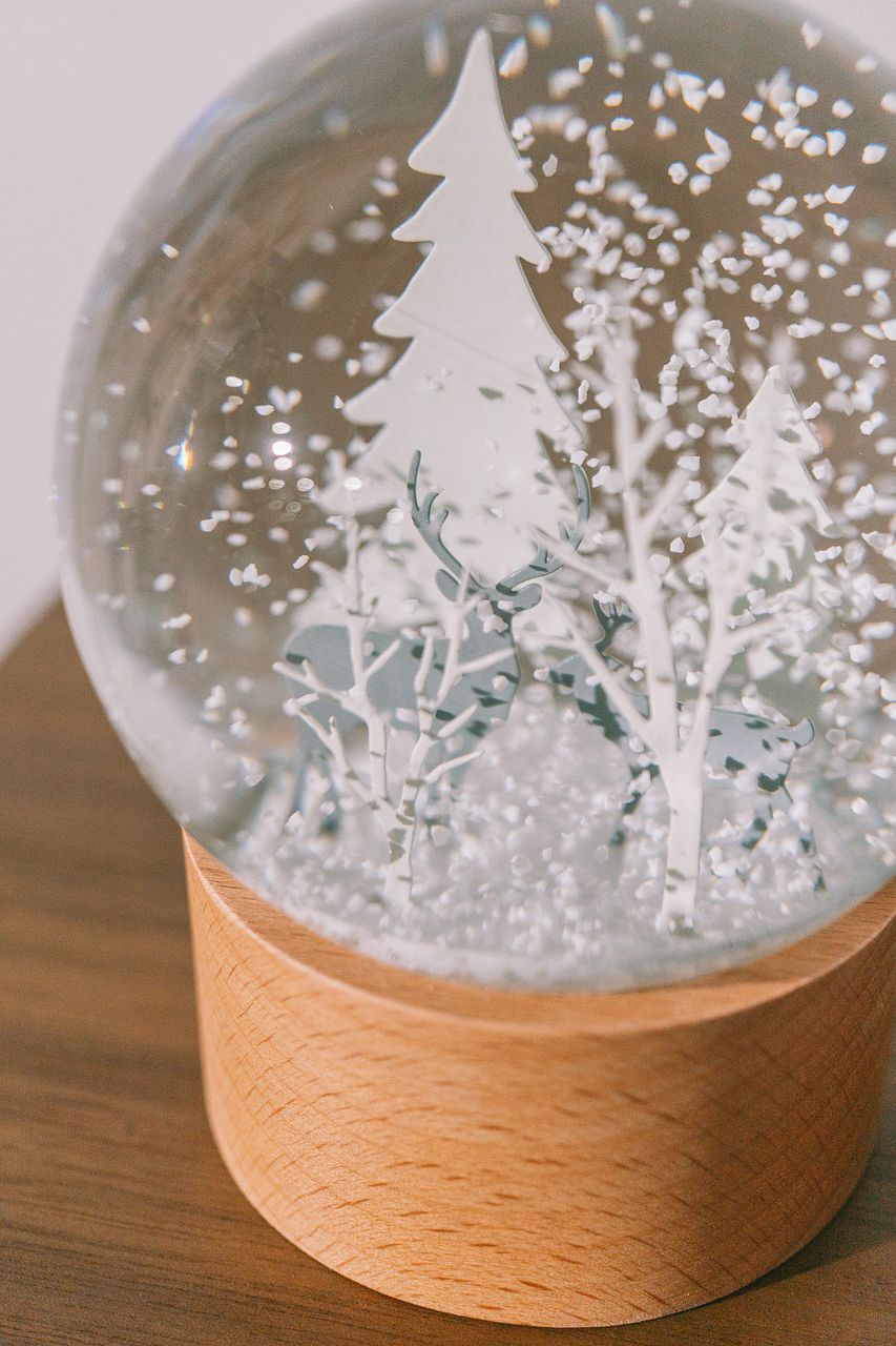 真っ白な雪でおおわれた、幻想的な森の中をイメージしたスノードームが登場⛄️台座は木で作られているので高級感があり、インテリアに馴染むデザインです。