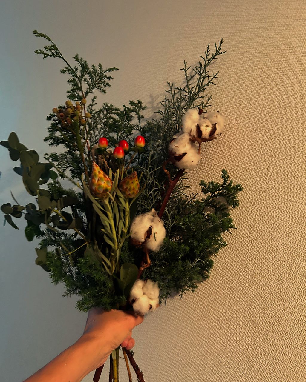 花材を少し足して、リースを作ろうと思っています。花のある暮らし、寒くなってきたからこそ楽しみたいと思います😊