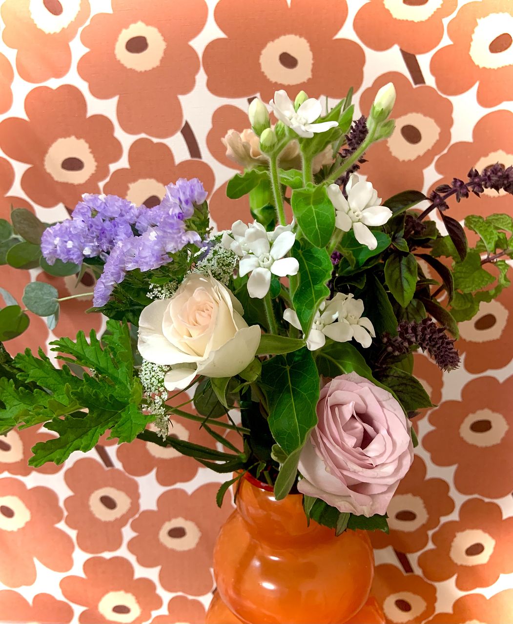 色の組み合わせ、種類の組み合わせも可愛くとても気に入りました。毎回近所のお花屋さんでは手に入らない品種が来るのも楽しみです。Googleカメラで調べてますが覚えるのも大変です笑。