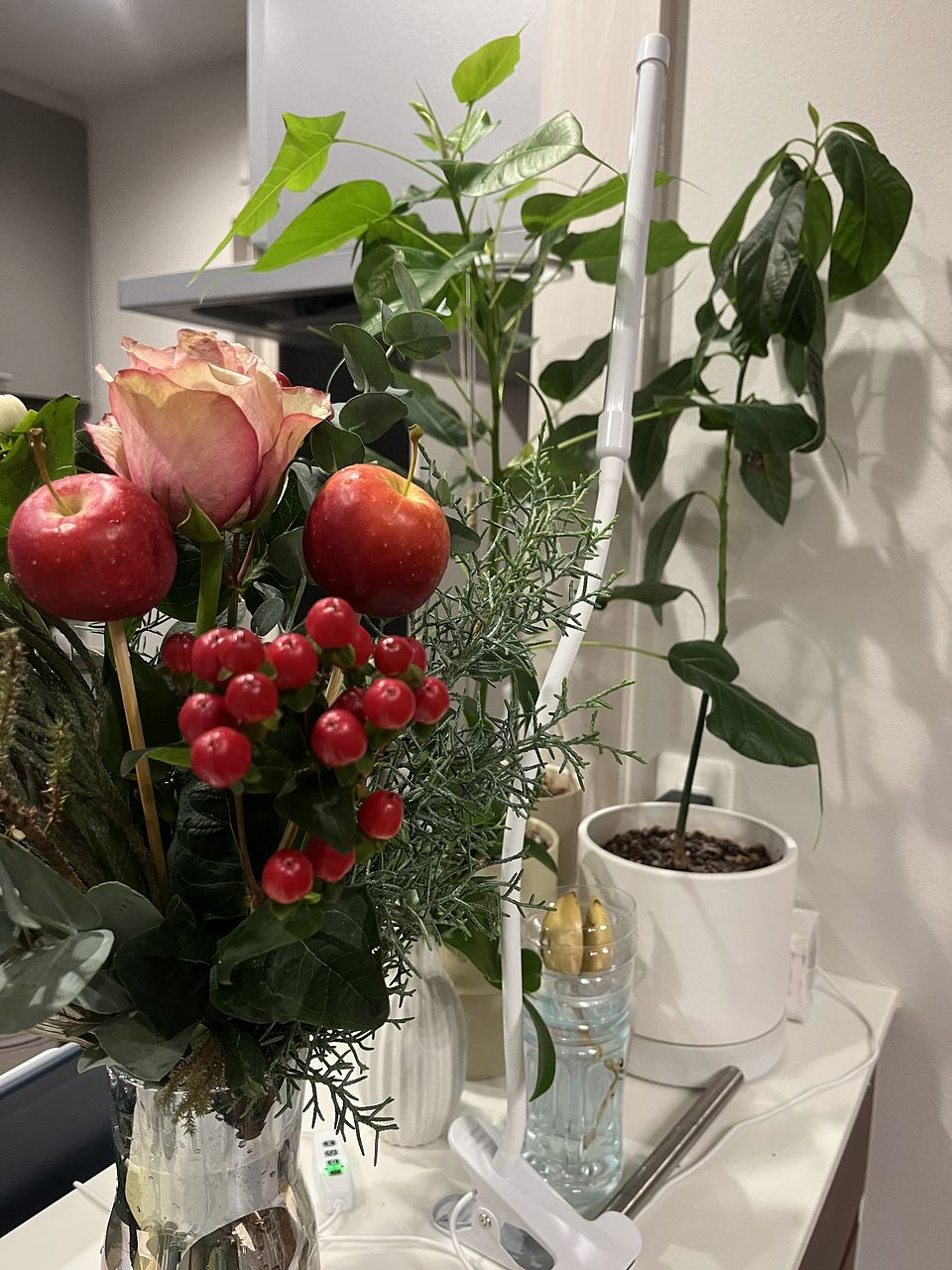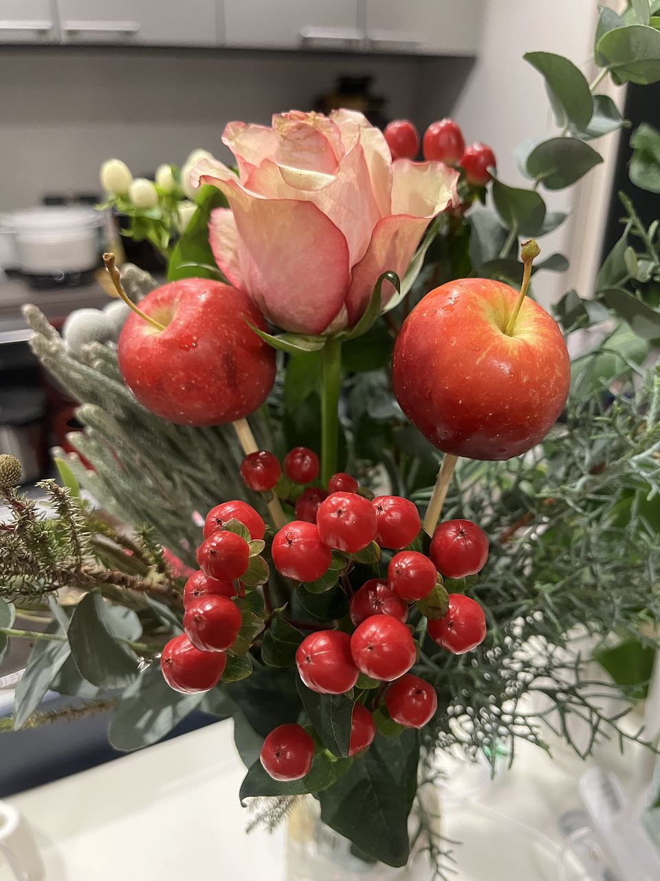 開けた途端ユーカリの爽やかな香りがしっかりしました! 緑と赤と白のバランスがよく、ホリデーシーズンにも似合う華やかさがあります。