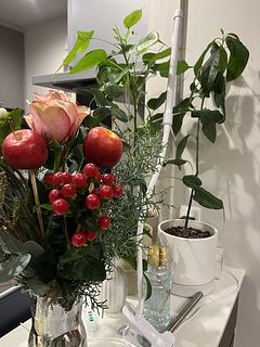 箱を開けると針葉樹のとても良い香りがしました。 ボリュームは写真よりちょっと少なく感じますが許容範囲内です。 りんごとバラがあるので可愛らしくてクリスマスも感じられて、11月初旬に飾っても違和感なく素敵です。 誤ってバラバラになってしまってスワッグに組み直すのが難しかったので、あまりいじらないほうが良いかもです。 名前の通り、赤いりんごがとっても可愛いスワッグです。 購入して良かったです♪オススメです。
