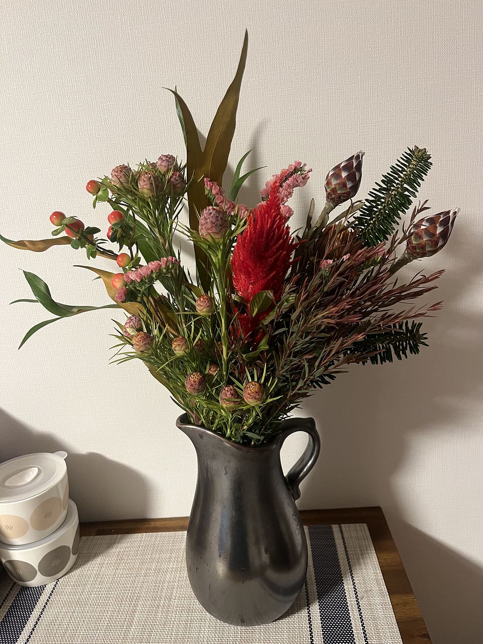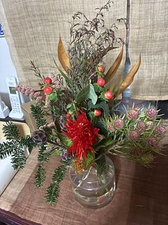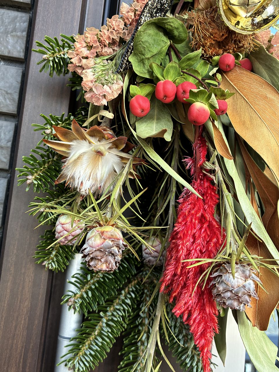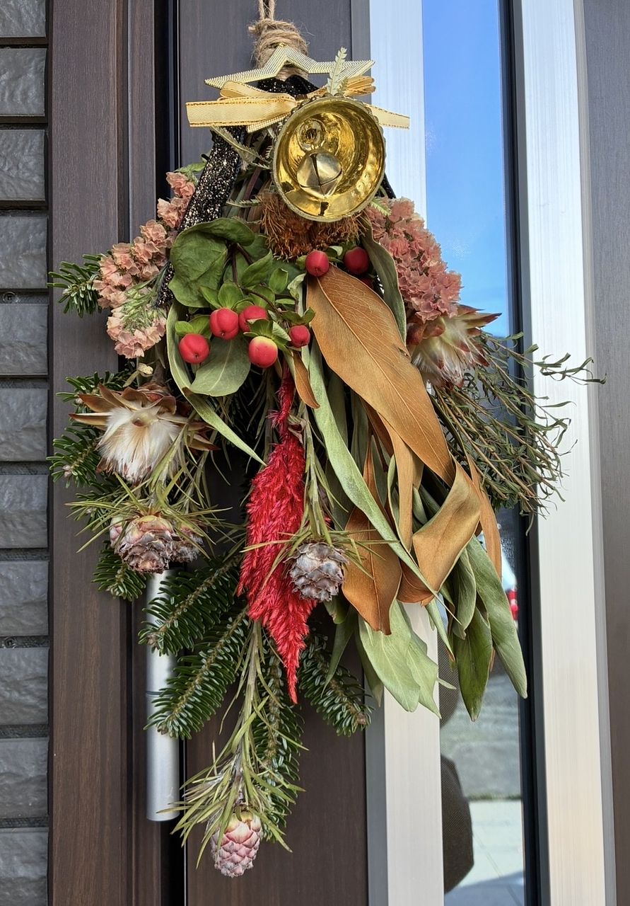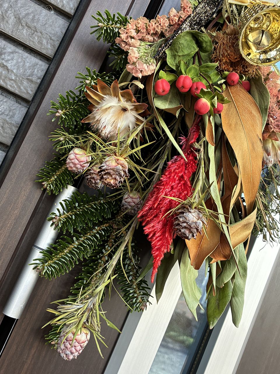 スワッグにふさわしい花材ばかりで、作るのが楽しかったです。