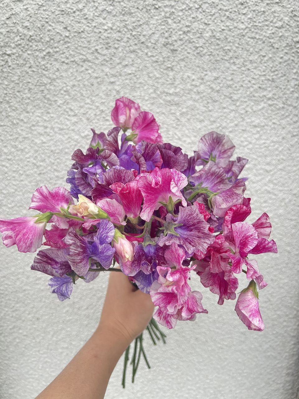 期待通りの香りと色に感動。 ピンク、パープル各8本はいってました。 お花の中で1番好きなスイートピー。