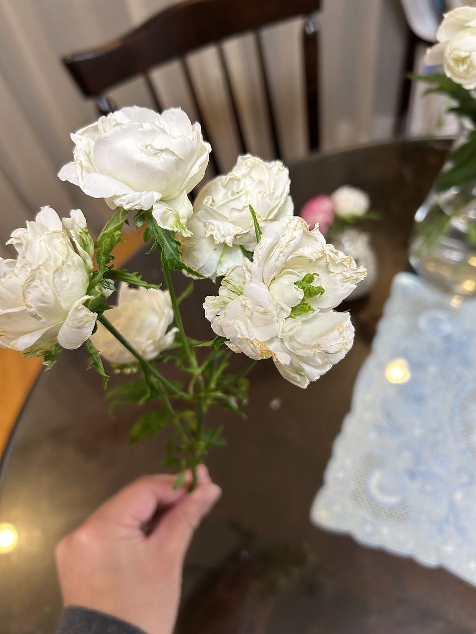 小ぶりでカーネーションに似た可愛いバラ。清楚な感じがしてとても癒されます。