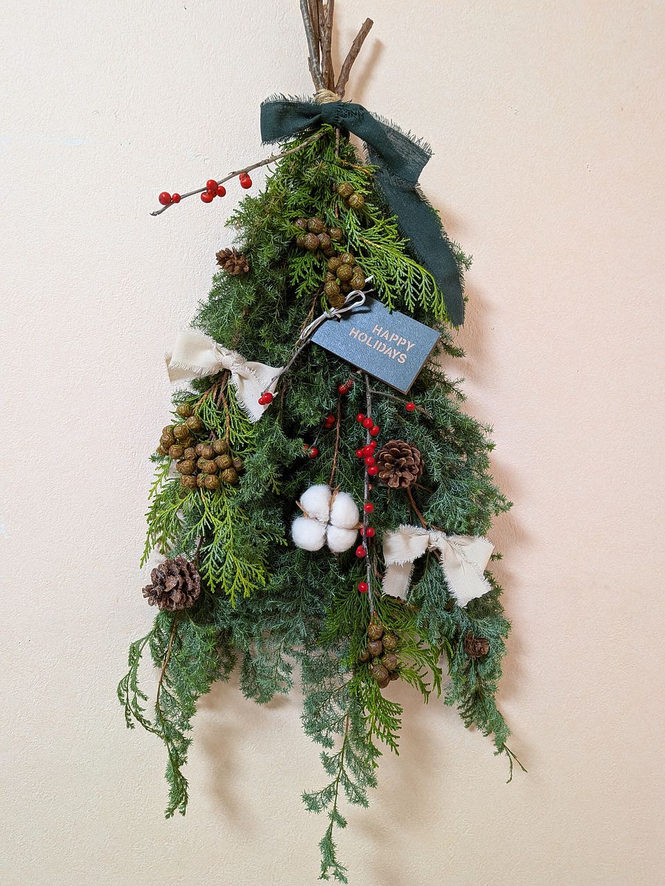今回セレクトした枝物は、赤い実がかわいい「ウィンターベリー」、レアな実つきの「ヒノキ」、ロングサイズの「ひむろ杉」と盛りだくさん🌲クリスマスオーナメントを吊るせばお部屋が一気にホリデームードに✨🎁