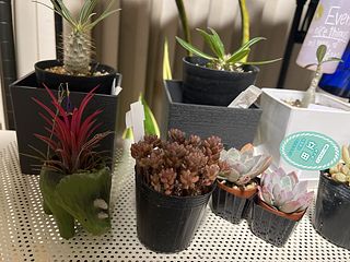 つぶらな瞳がかわいい🥺トリケラトプスの背中にチランジア「イオナンタ・フエゴ」を乗せて。先端がほんのり赤いのが特徴のエアプランツです。
