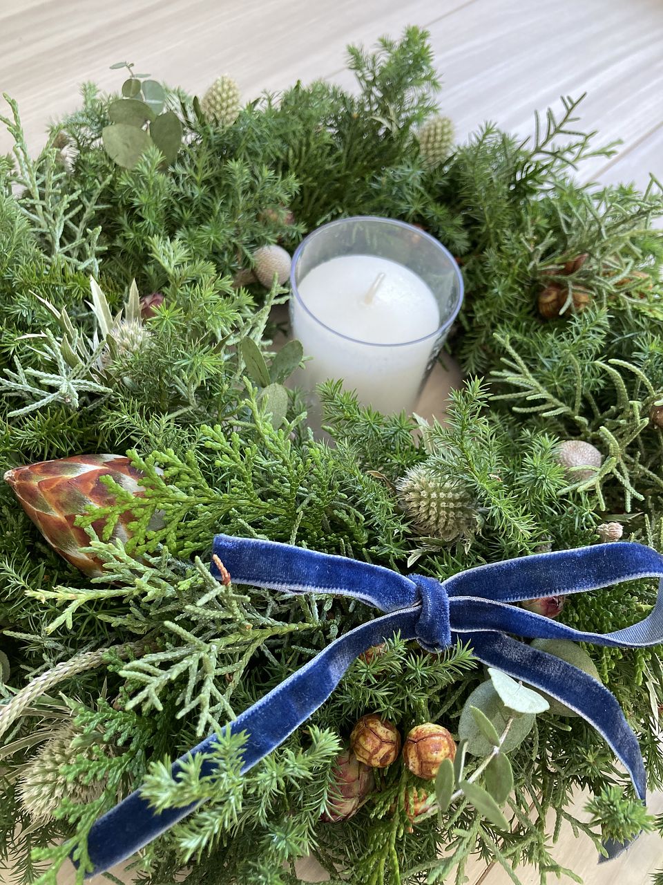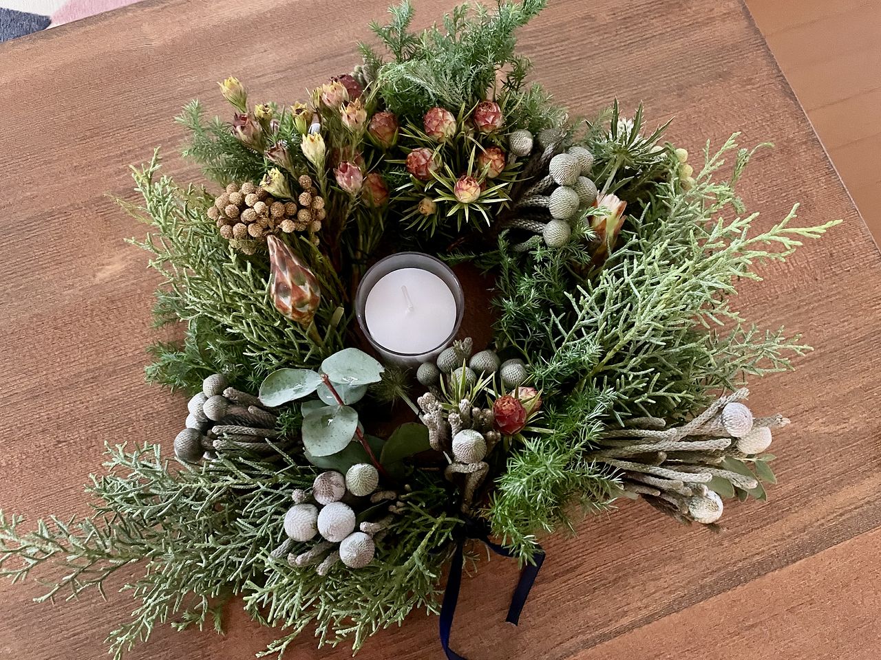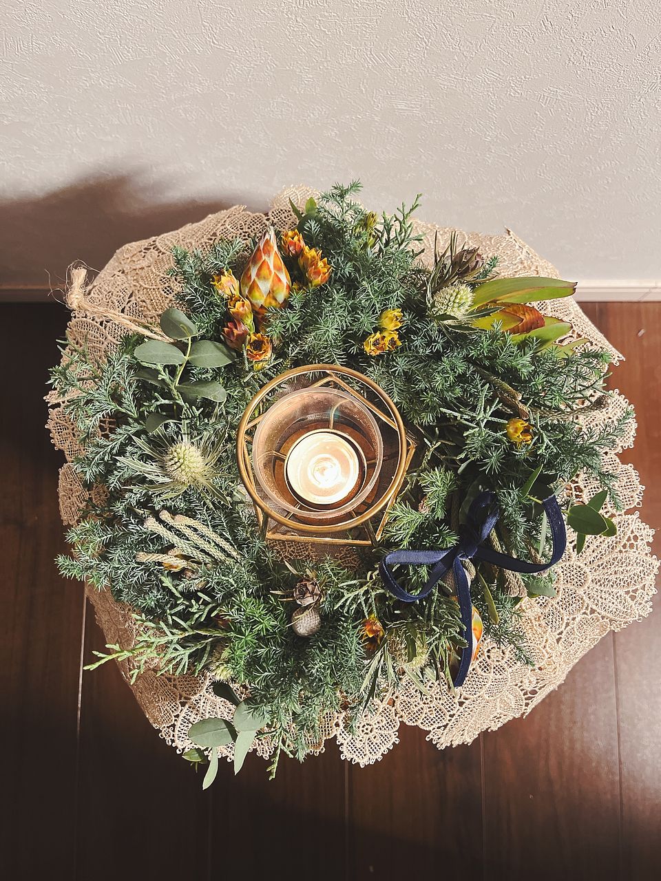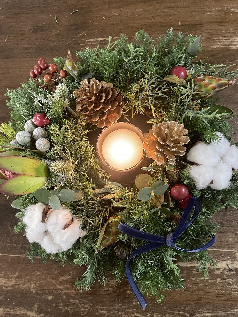沢山の花材でキャンドルリースの他にスワッグまで作れました。