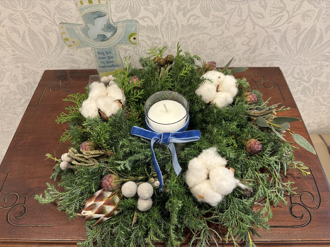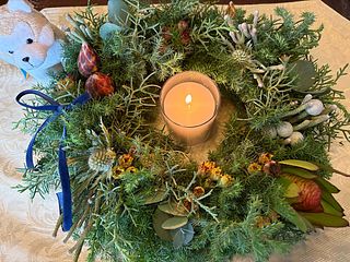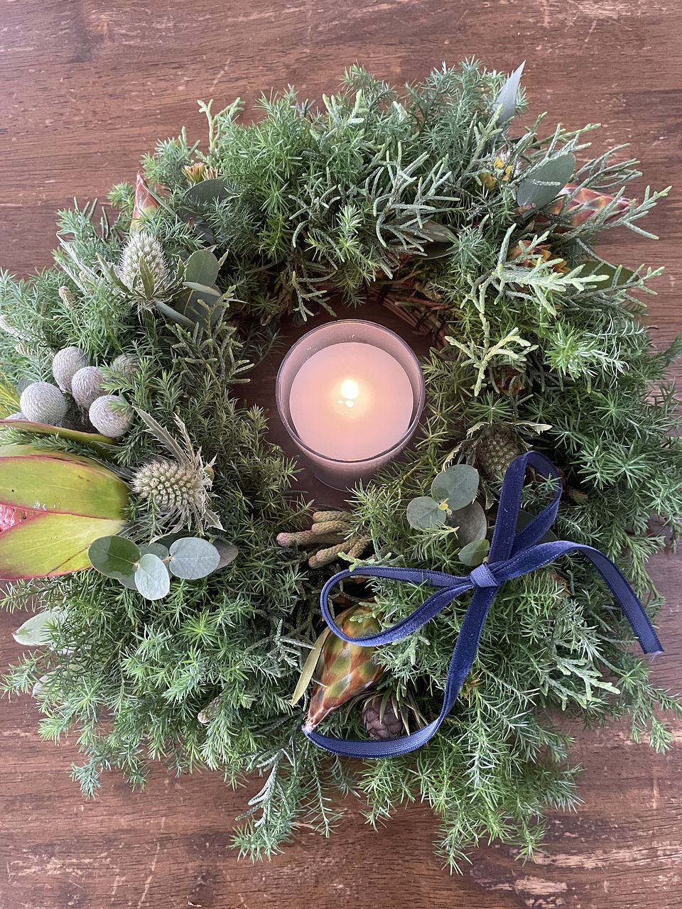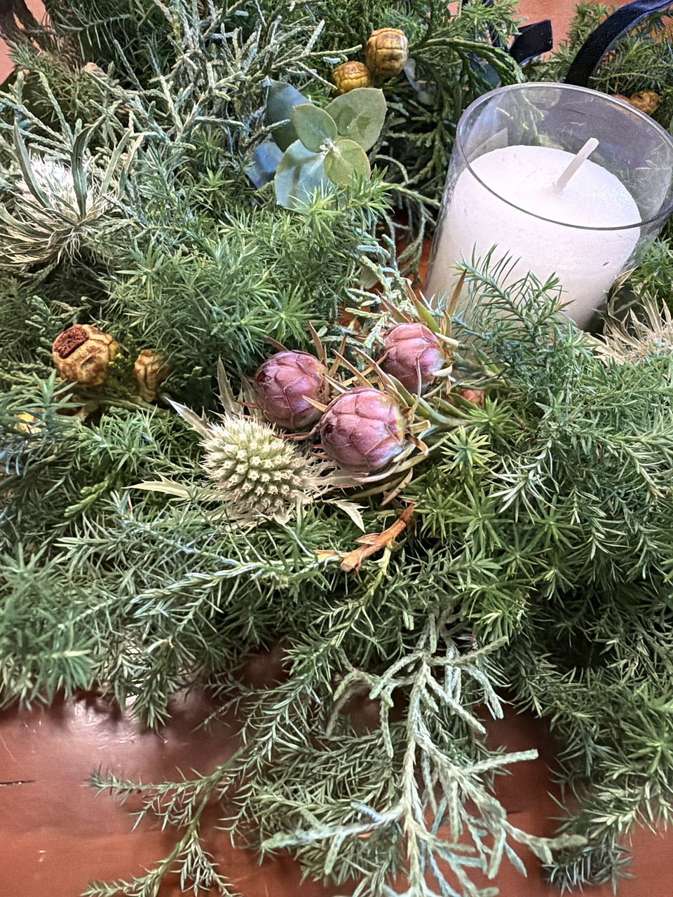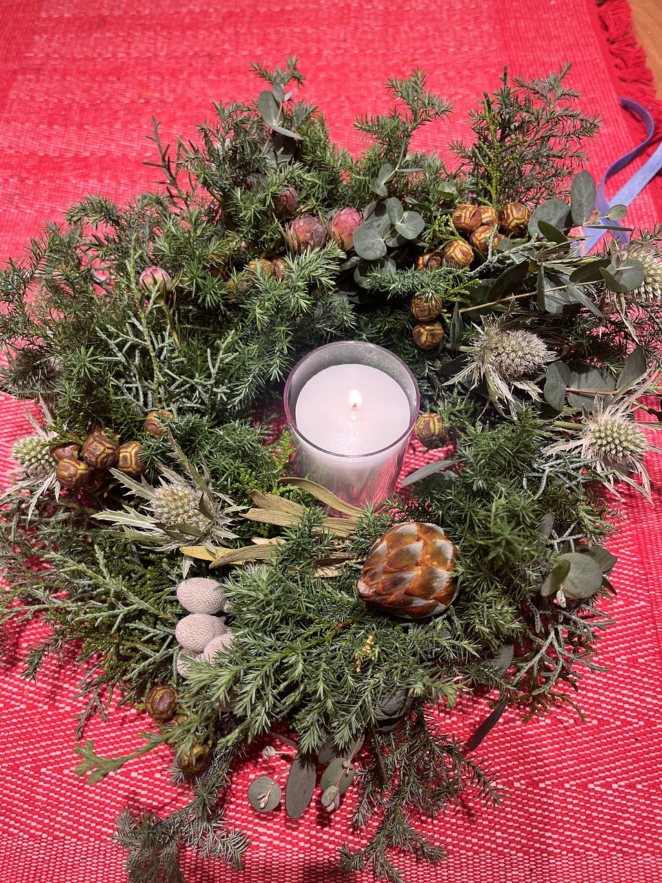 沢山の花材でキャンドルリースの他にスワッグまで作れました。