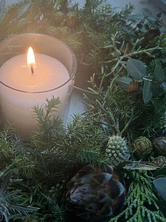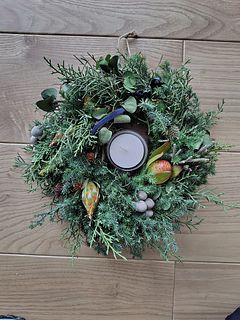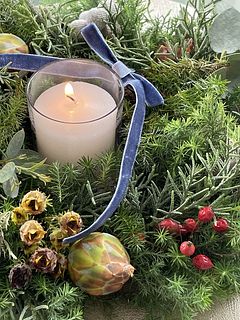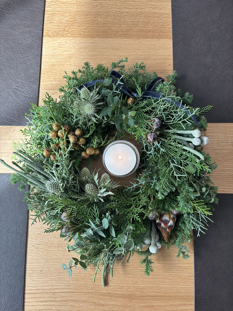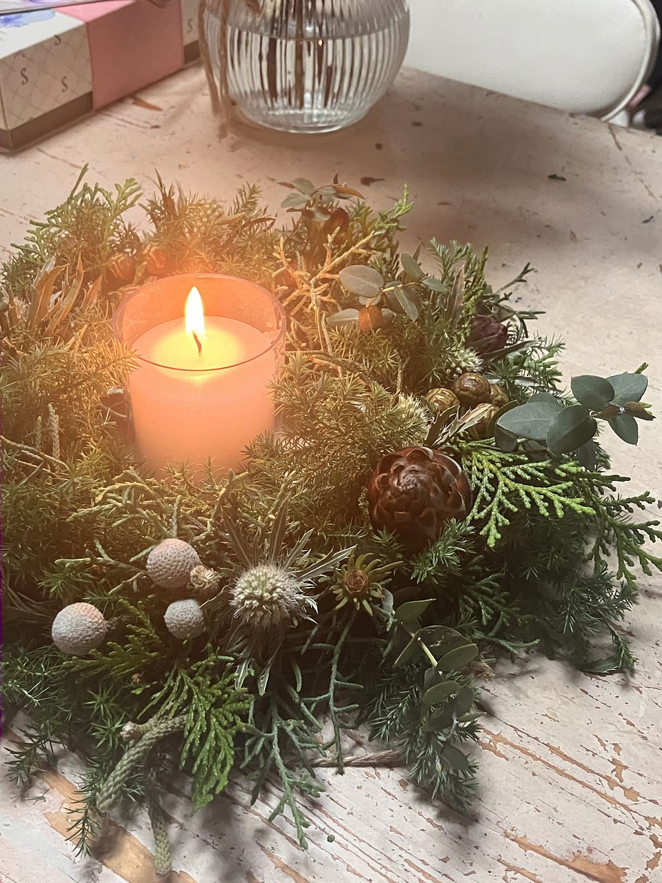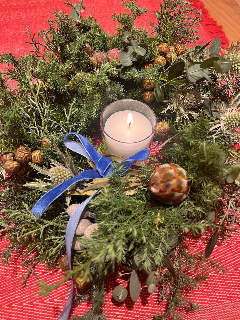 いつもリースの花材たっぷりで可愛らしいリースが作れるので今回も可愛くできました!ヒバやスギのいい香りが癒されます🎄 出来上がりは直径25センチでした。 アレンジで、ハロウィンの時の余ってた実もドライにしてたので一緒に入れたらよりクリスマスっぽくなって満足です🥰 キャンドル1個入れるにはぶかぶかに作っちゃったので、家にあったキャンドルを寄せ集めましたがいい感じです🕯🌟 花材は少し余るのでスワッグや香りを楽しむために花瓶に入れておくと良いです🙆♀️