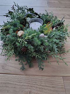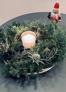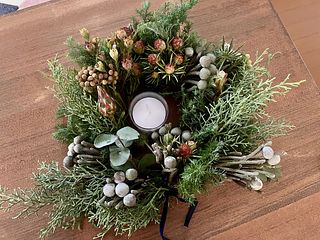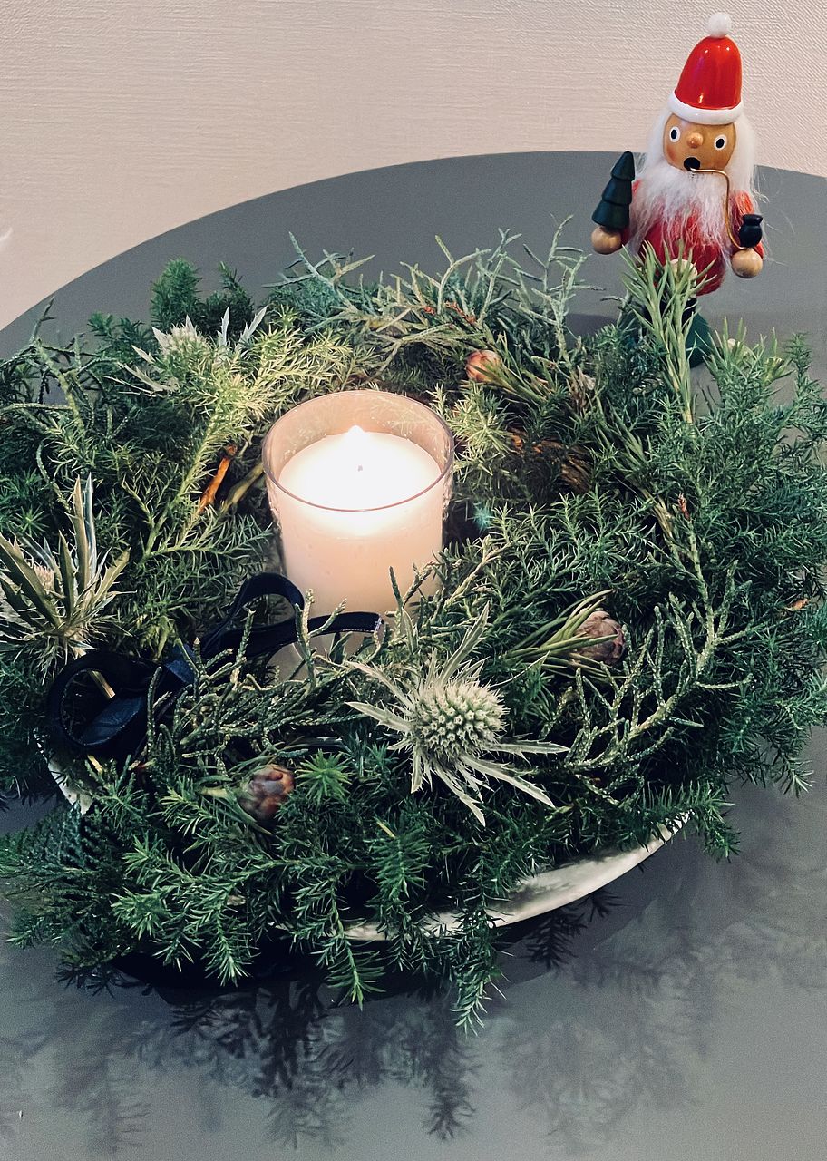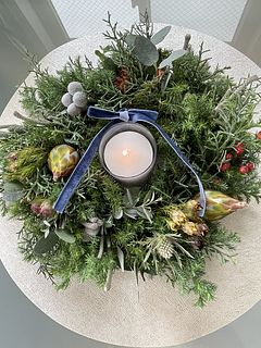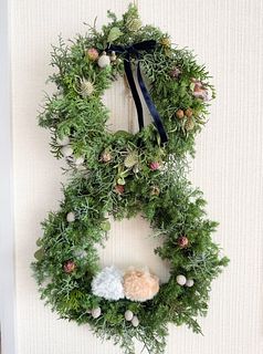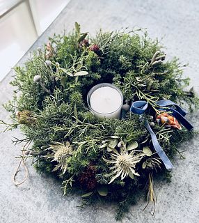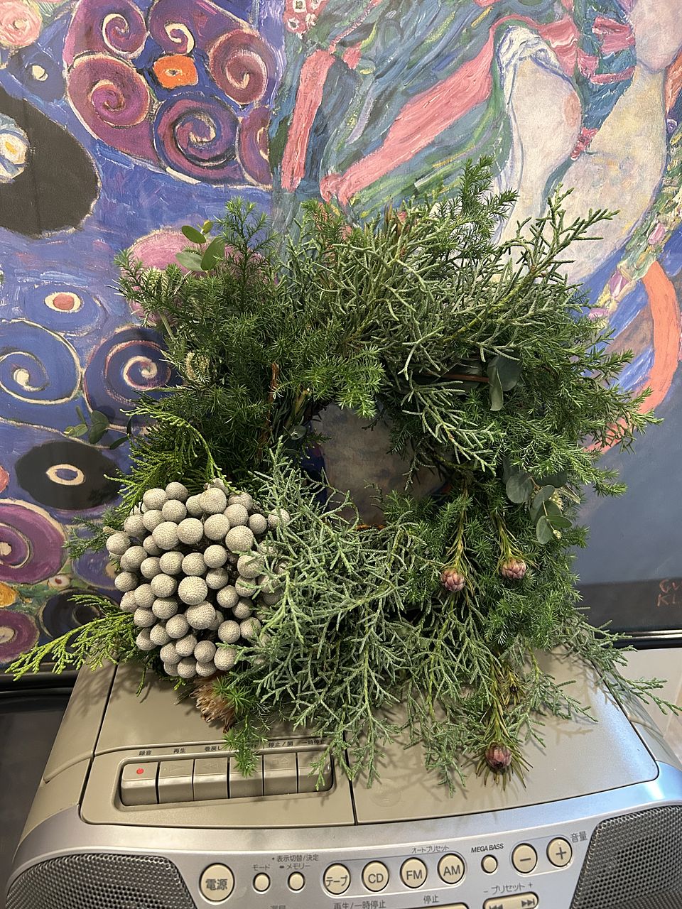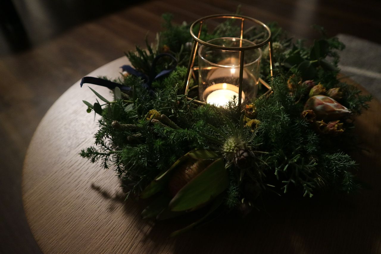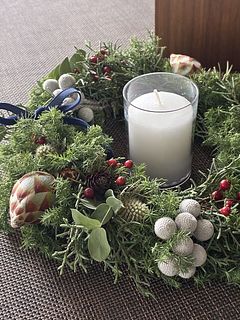 5歳の娘と一緒に楽しく作りました。 バランス取るのは難しいですが、花材がおしゃれなのでそれなりにまとまったかな?! クリスマスまで持つと良いですかどうなるかなぁー