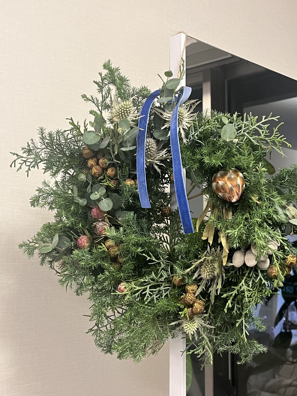 花材のボリュームが満点でリースの他にスワッグも出来ました! 仕上がった作品を飾った玄関とリビングが良い香りに包まれています 大満足です♪♪♪