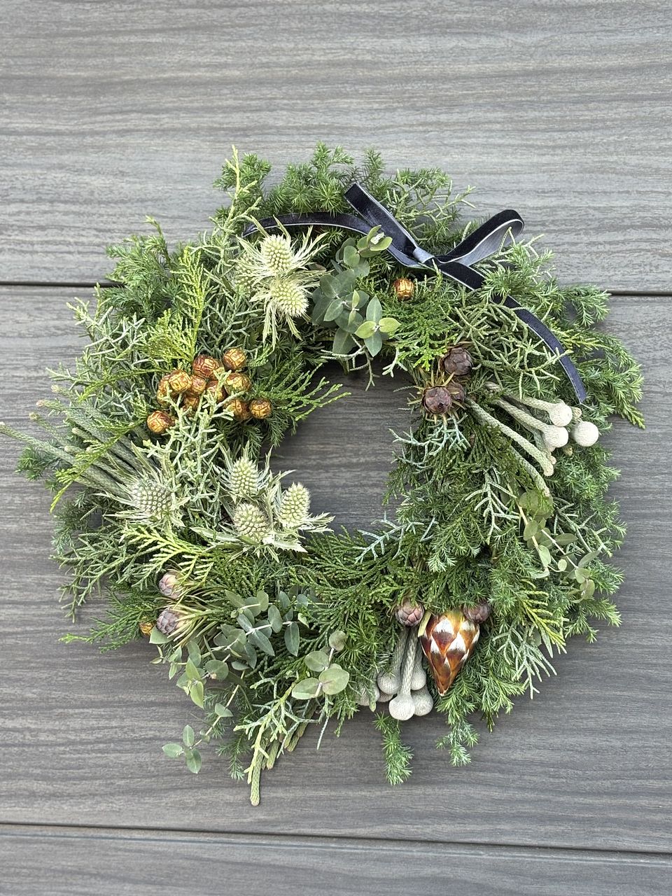 ギュッと詰め込んでシックなリースが出来上がりました😊