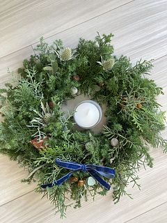 動画を参考に、初めてのリース作りに挑戦!必要なものが全て揃っていたのでありがたかったです。同日届いた野バラの小枝もプラスしてアレンジを楽しみ、無事完成。フレッシュな森の香りに包まれ、贅沢で楽しいひとときでした。ありがとうございました!