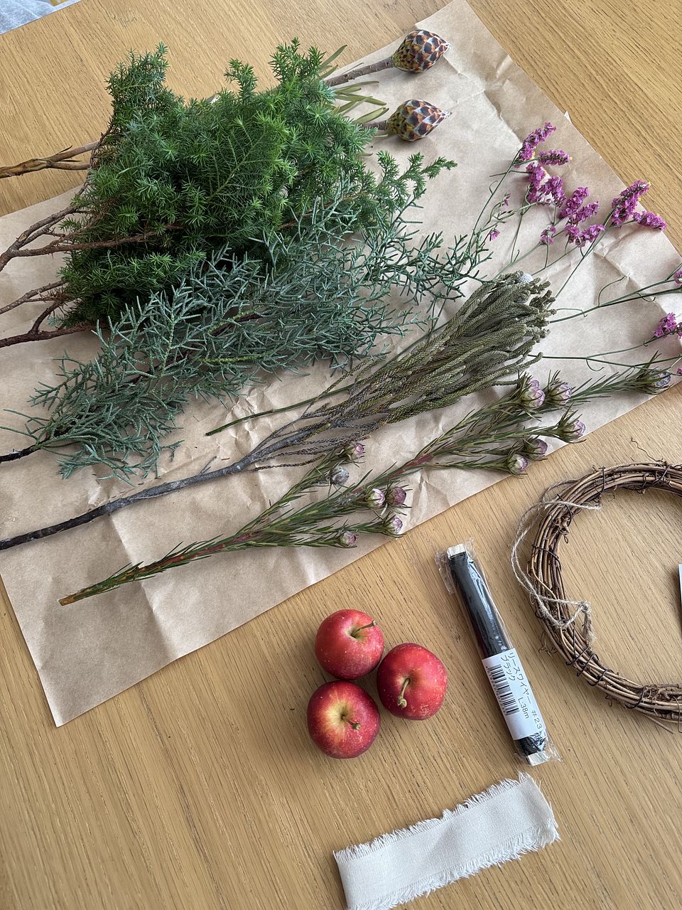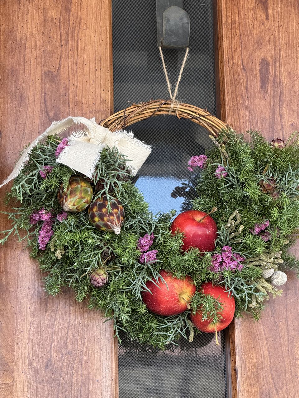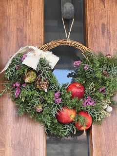 冬の森に実るりんごと、香り豊かなグリーンを合わせたナチュラルリースに仕上がりました☺️