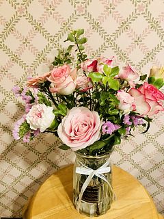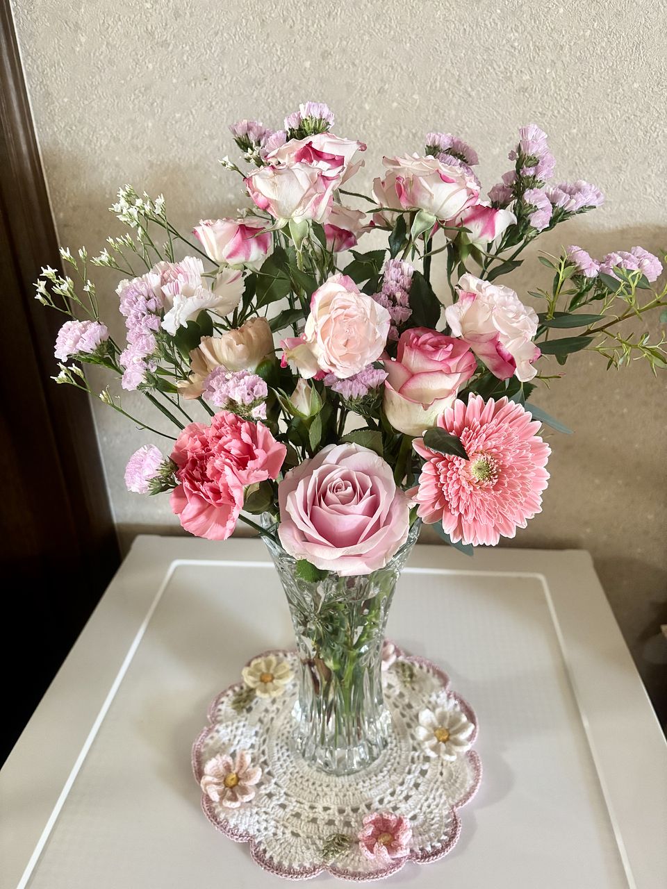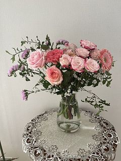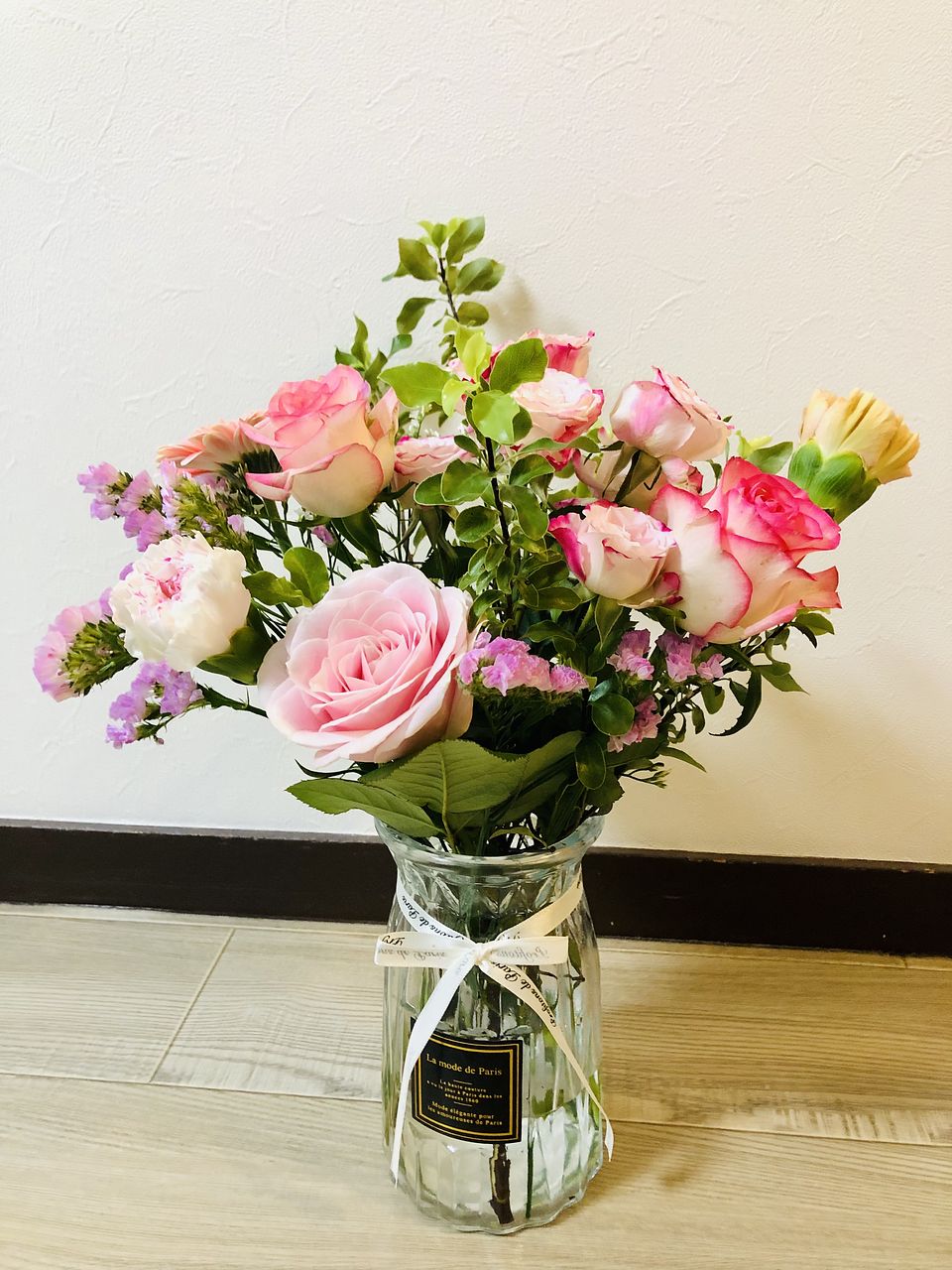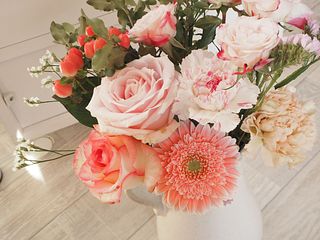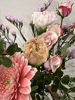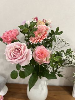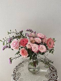 とても可愛いバラやガーベラ🩷 お花はとても新鮮でお手入れ次第で長く楽しめます💕イメージ写真とは少し異なりますがとても満足です☺️