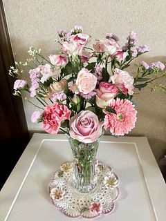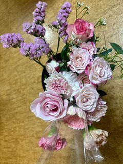 素敵でした。写真を拝見すると薄ピンクのブーケかなと思いましたら我が家に届いたのは少し色の濃いめのバラ、カーネーション、ガーベラ、バラの花びらの先が濃い色がついたお花が色とりどりのブーケでした。可愛い😍感じになっていました。いい夫婦の日に愛らしい孫が来てくれるので届いたお花とピッタリで幸せが膨らみます。ありがとうございました。