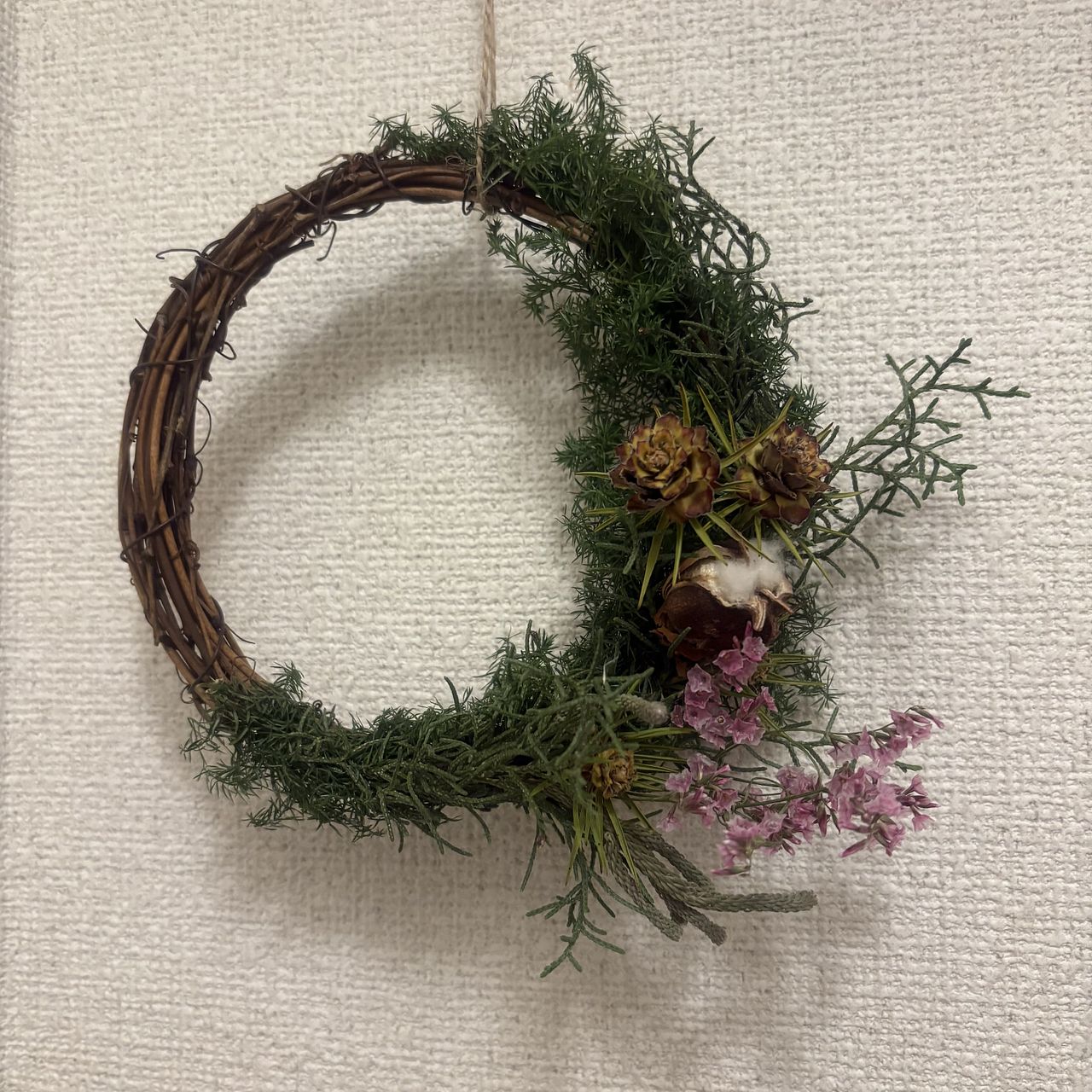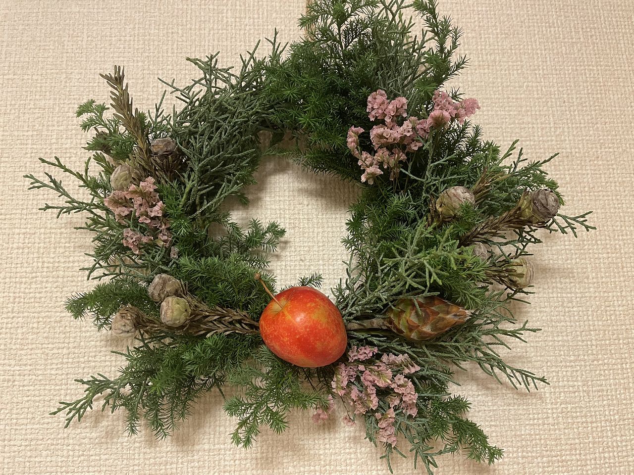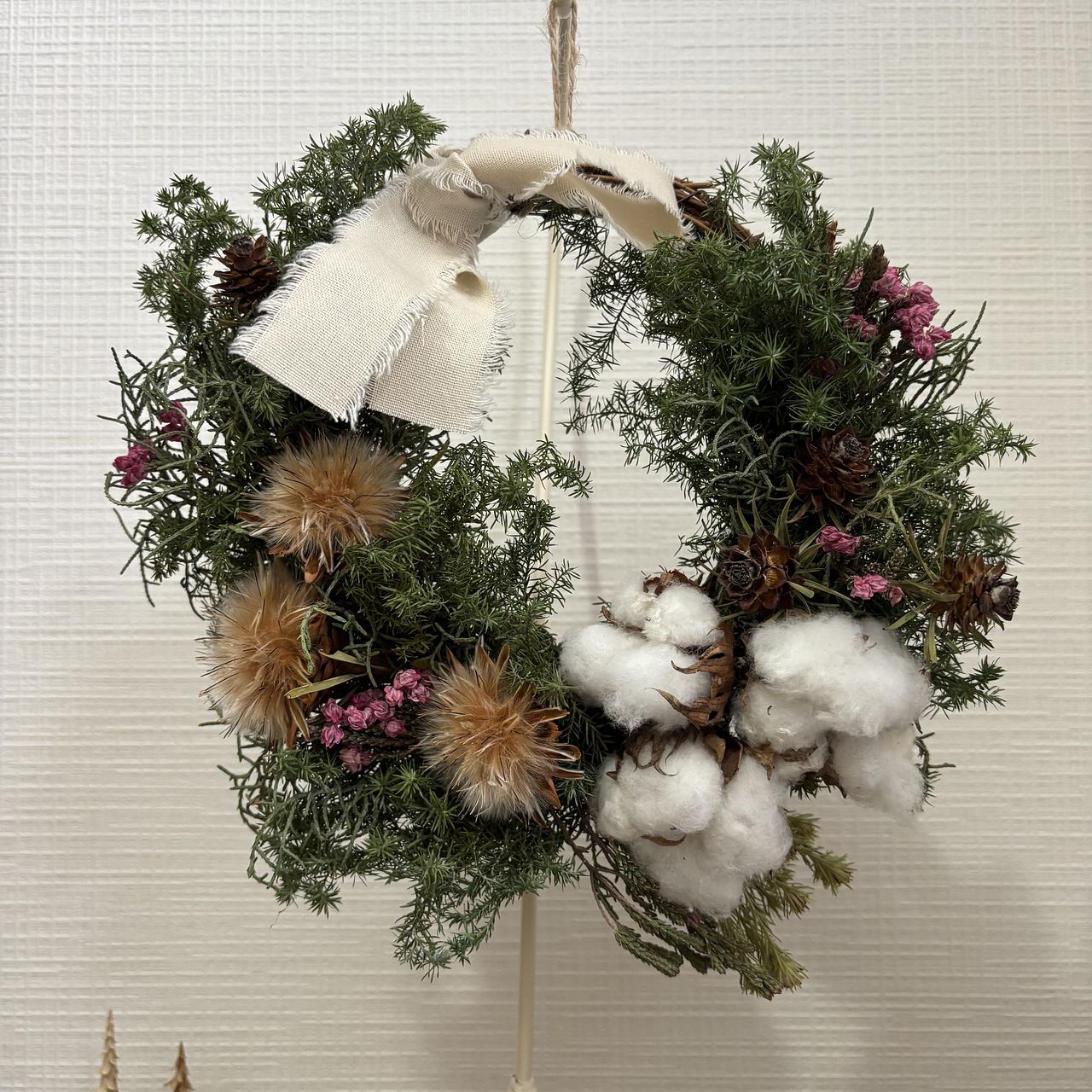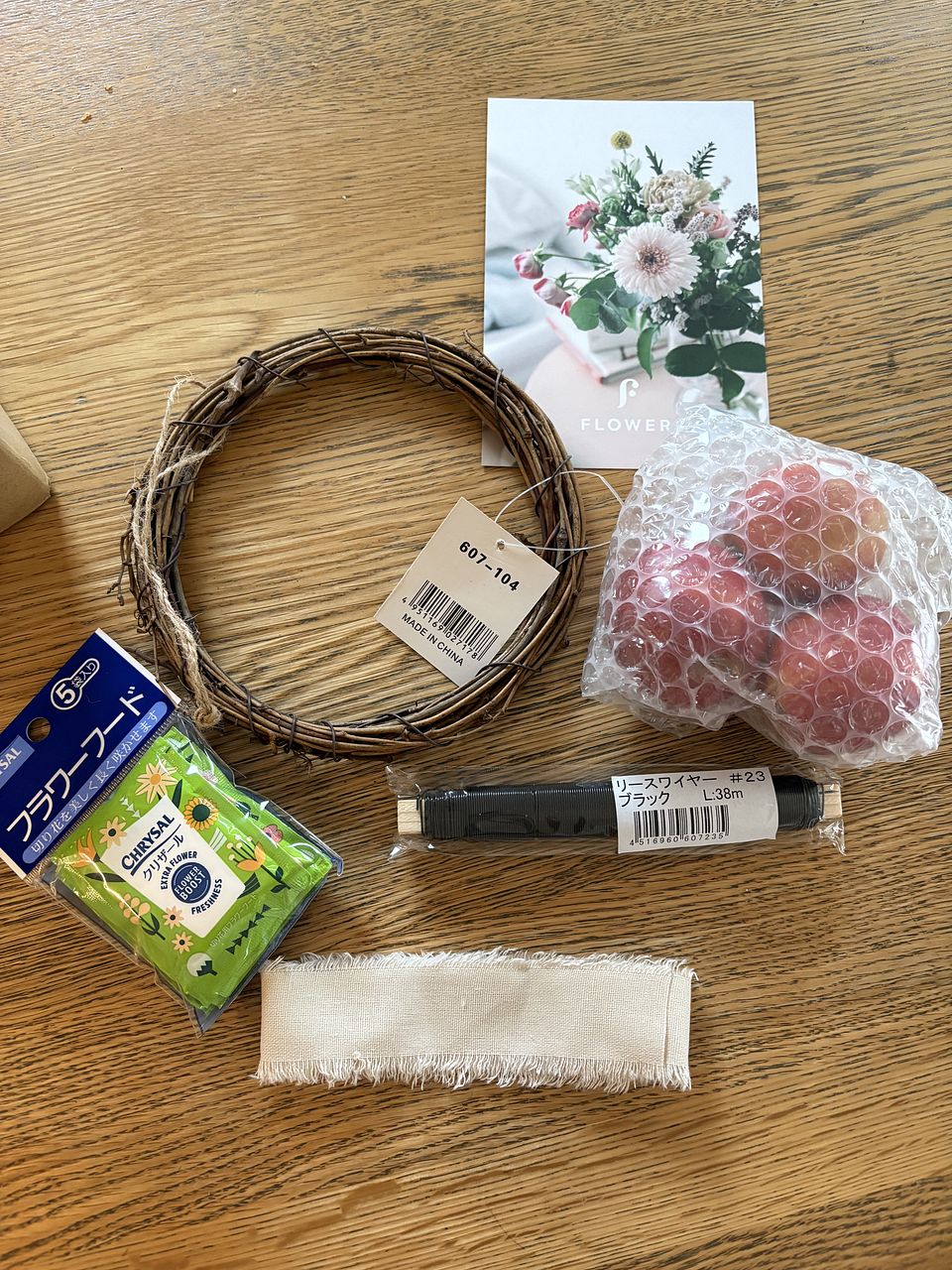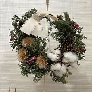 5歳手前の子供と一緒に作りました。ワイヤーで巻くところはだいぶ手を出しましたが、花を切ったり次どれをつけるか選んだりさせて、それでも素敵に作れました!他の方のレビューを参考に百均で追加のリース土台とお飾りを買って2個目も作れました。いい知育にもなったと思います✨