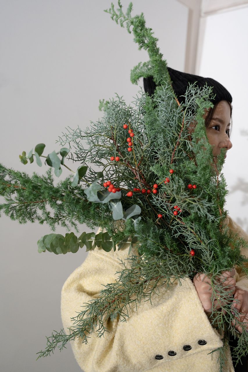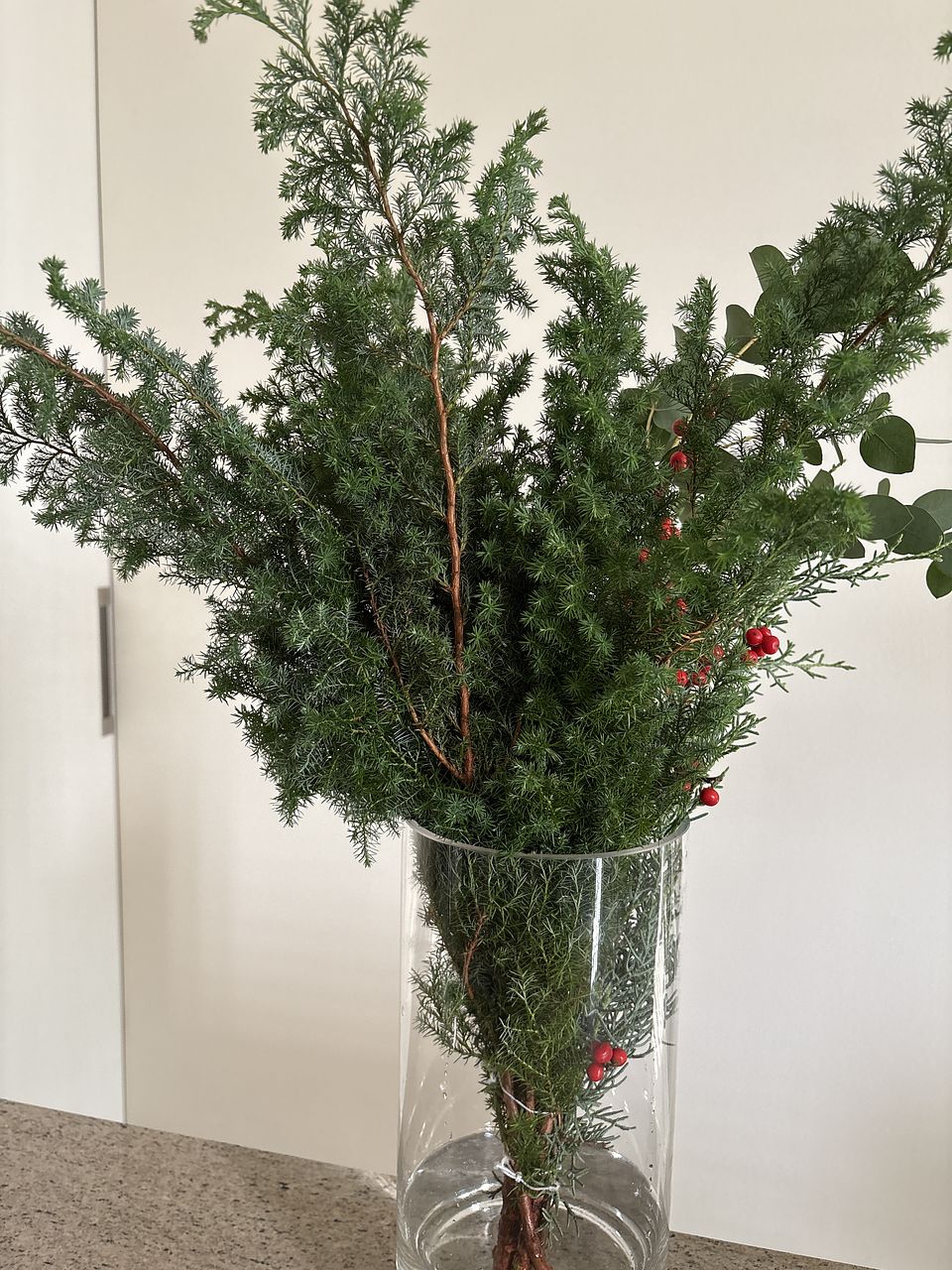 今回セレクトした枝物は、赤い実がかわいい「ウィンターベリー」、ロングサイズの「ひむろ杉」「ブルーアイス」「ユーカリ」と盛りだくさん🌲クリスマスオーナメントを吊るせばお部屋が一気にホリデームードに✨🎁