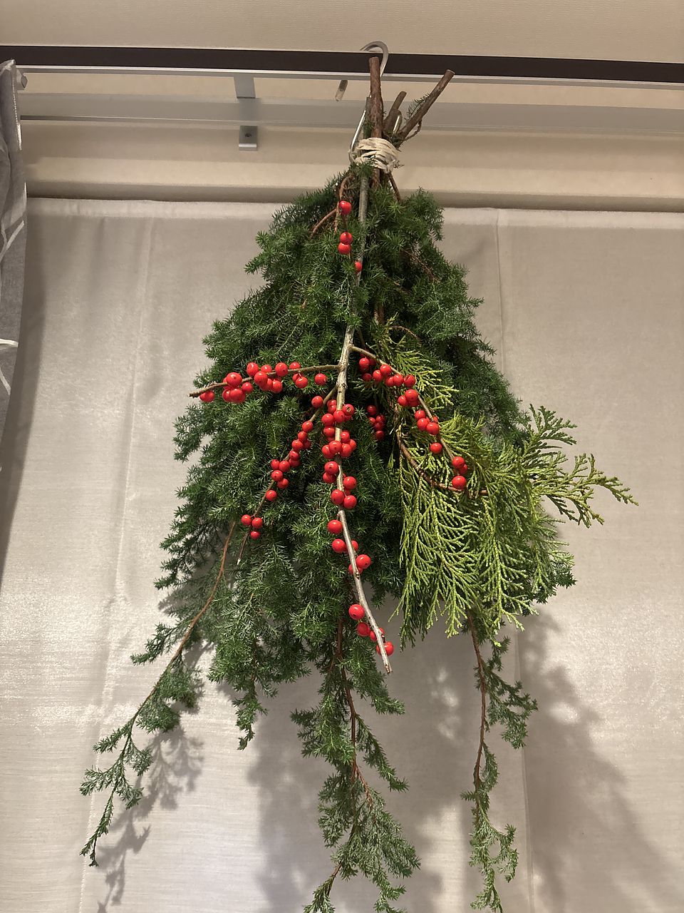ヒノキの実が思ったよりは少なく葉の色も黄色に 杉は写真通りでしたが、ウィンターベリーもお写真よりは少なく感じこの量ならチビでももう一本欲しかったところ。写真と同量の期待感は杉のみでした。 植物相手なので仕方ないのですがカメムシさんが3匹ほど出てきて、お部屋の中で虫取り合戦が😂おぎした。