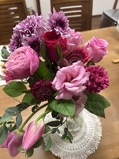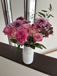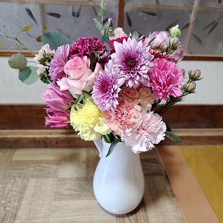 とても素敵なブーケでした! ほのかに香る薔薇、秋らしい可愛らしいピンクの花々に感動しました。 ひとつはテーブル花に、ひとつは母の供花にしました。お花をこよなく愛していた母も喜んでいると思います。こんな素敵なブーケが安価で購入できるなんて最高です❣️