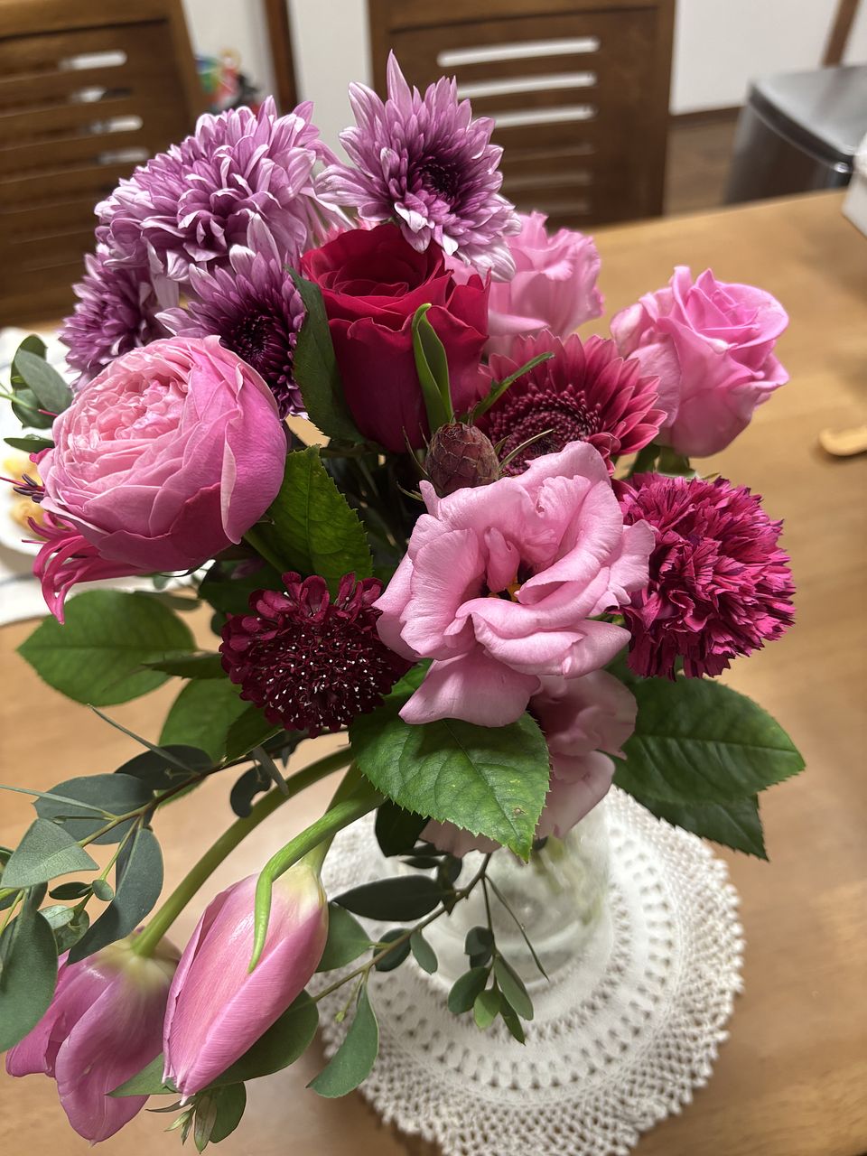 ボリュームもあり色合いもとっても可愛いブーケでした。 色々な所に飾って楽しんでます😊