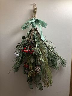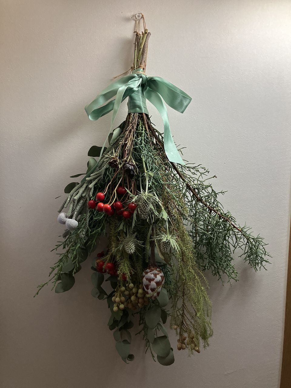 ブルーアイスすっとした香りも楽しめる、グリーンと実ものを束ねたスワッグはいかが?