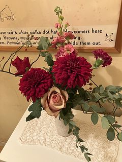 かわいいくすみカラーのお花が届きました 明日まで飾ってからスワッグにしたいと思います!