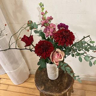 思っていた以上のお花の新鮮度とアレンジで大変気に入りました。色合いもこの季節にマッチして素敵です。 このお花の種類で駅前通りのお花屋さんではこのお値段で買えずなのでお得感が一杯です。ありがとうございました。