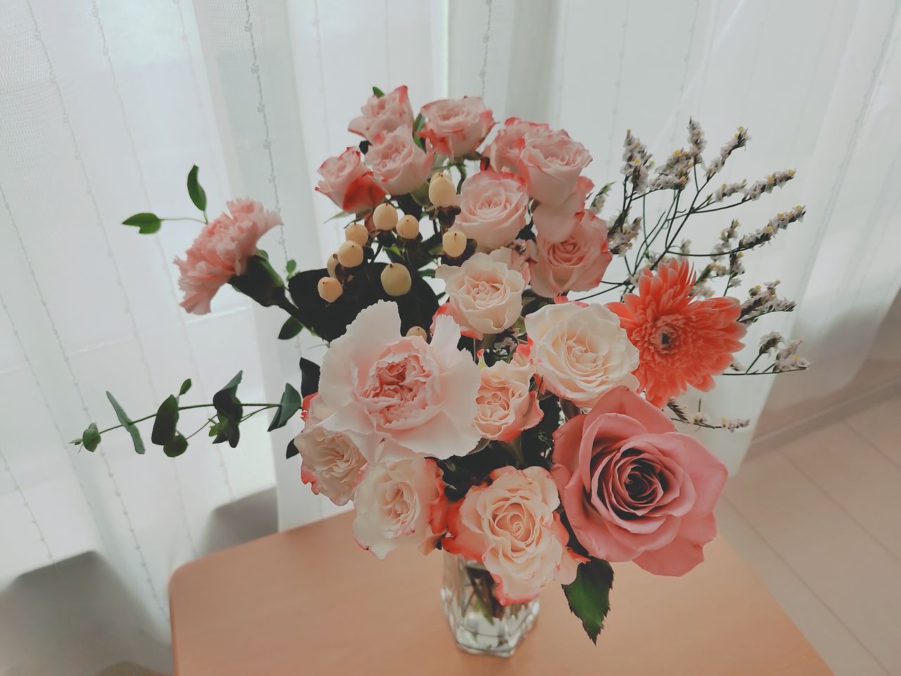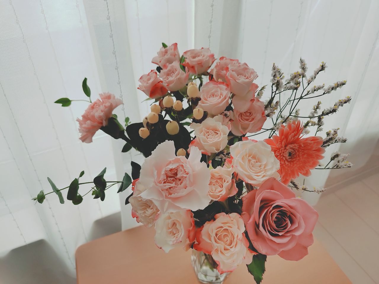 可愛いお花が届きました。優しい色で部屋が明るくなりました。