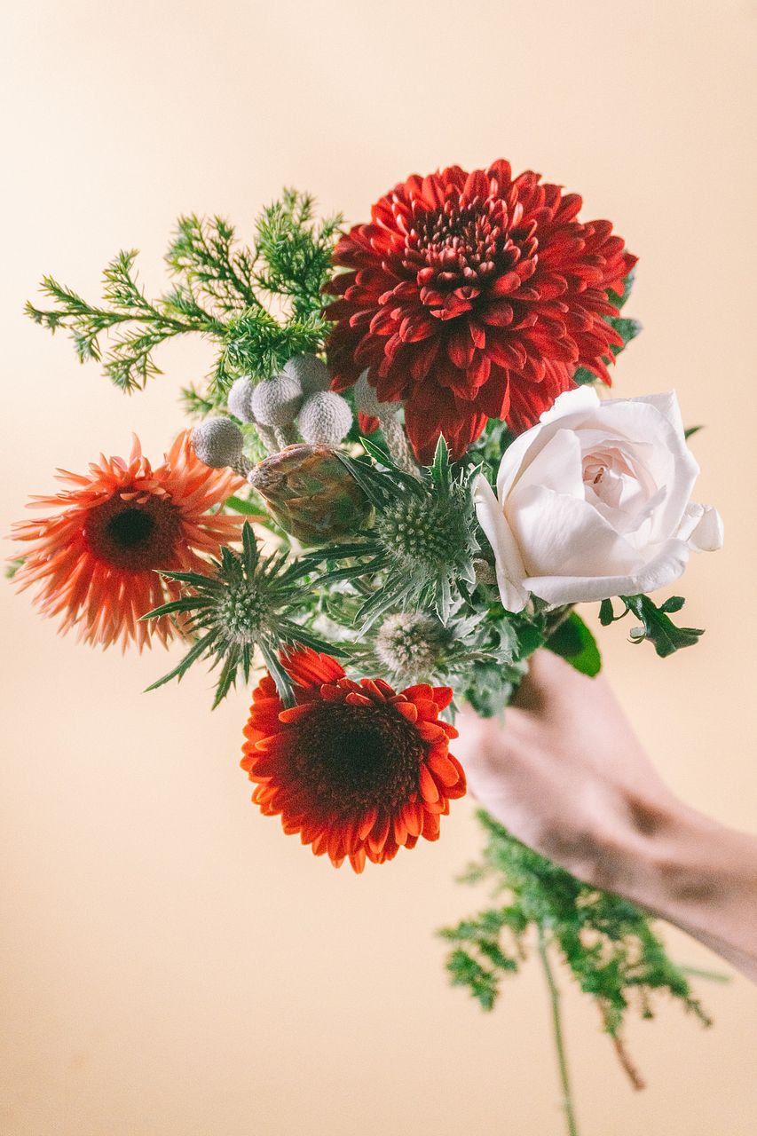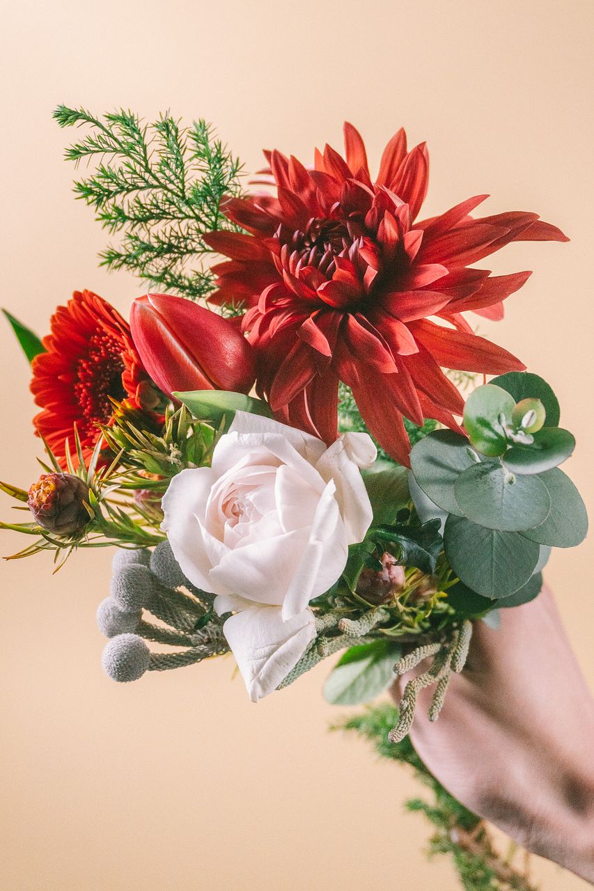 心温まるレッドやアプリコット、ホワイトカラーはホリデーシーズンにぴったり。わくわく、クリスマスまでの期間が楽しみになちゃう。そんなブーケを飾ってみませんか?🎅