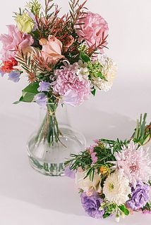 スパイラルに組まれていて葉の処理もしてあるのでそのまま飾って楽しめます。たっぷり入っているので華やかです。内容は毎回おまかせですが、色の雰囲気は同じ雰囲気でお届け予定です。お楽しみに!