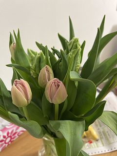 今回は3品種ミックスでお届け。どんなチューリップが届くかは箱を開けるまでのお楽しみ。長く楽しめるよう、硬いつぼみの状態でお届けすることもございます。水揚げするとふっくら色づきますのでご安心ください。