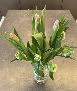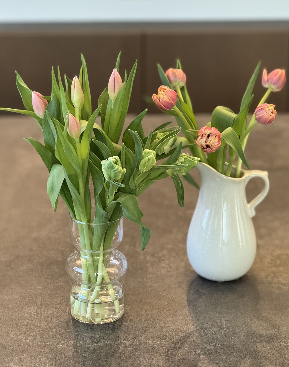 3種5本合計15本のボリューミーなチューリップ🌷 チューリップの切り花は初めてです。 これからの変化がとても楽しみです😊