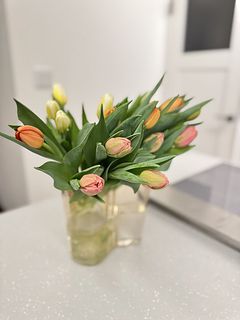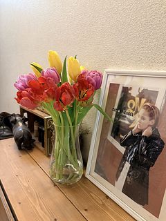 沢山のチューリップ🌷が届き、寒いーいこの時期に早々と春の暖かさが家の中を明るく華やいでます♪ 数が多くて、2つに分けて生けてます 蕾が段々と咲いて行く様子も日々楽しみです🥰😍