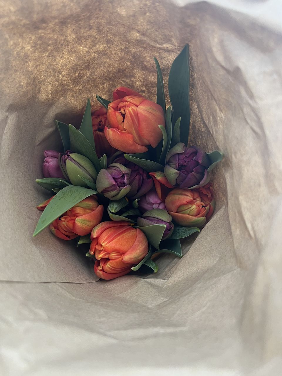 新鮮なチューリップ🌷が沢山届きました❗️ 紫とオレンジのチューリップでした🌷咲いてくるのが楽しみです❤️ こんなに沢山のチューリップを飾るのが初めてなので贅沢な気分です❗️