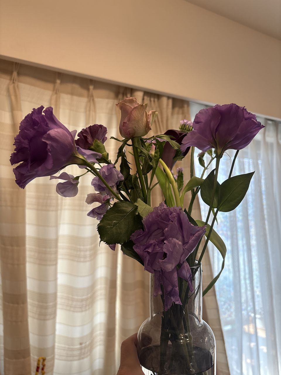 お花は写真ほど元気はないけれど お値段にしたら、十分に満足しています💜 色も私の好きなパープルで、購入して 良かったです☺️