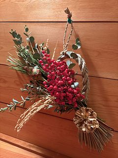 ワクワクしながら到着を待ってました。南天もさほど落下してなくてよかったです。ただお花のボリュームに比べてしめ縄が思ってたより小さいのが残念でした。バランスがとりにくかったけど、とりあえず出来上がってよかったです。