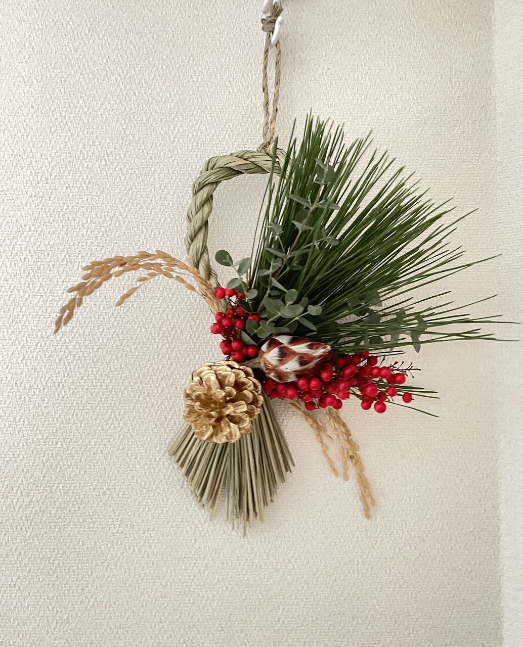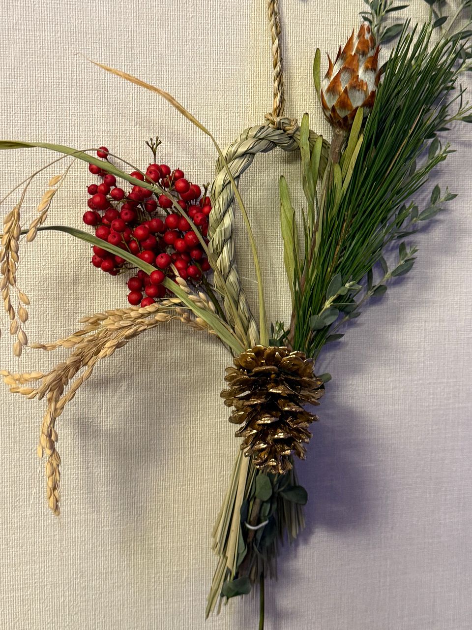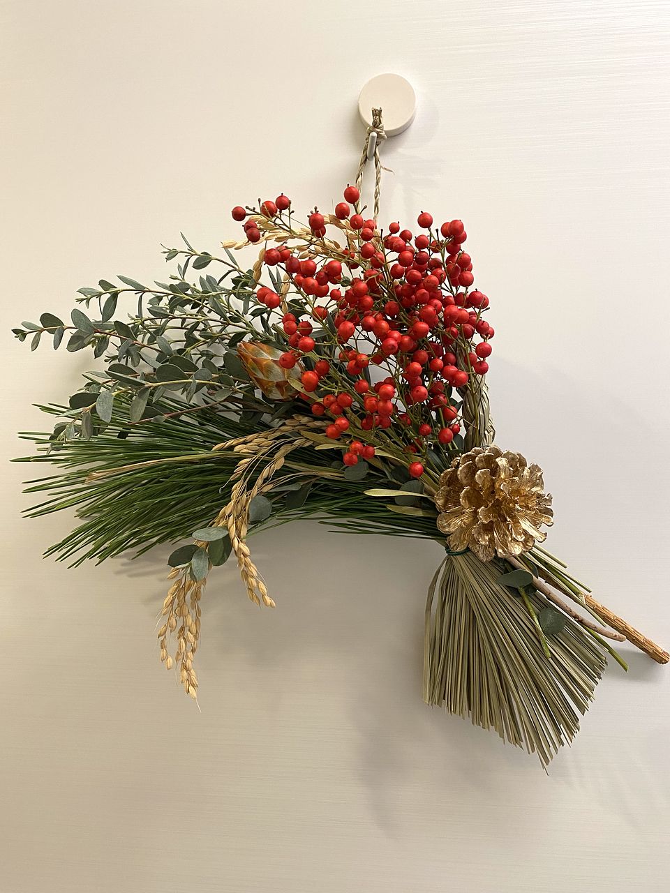 花材を切らずに作りました!おしゃれなお正月飾りが簡単できて嬉しいです😊