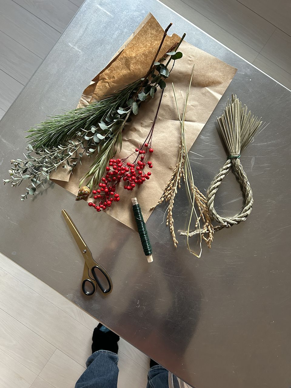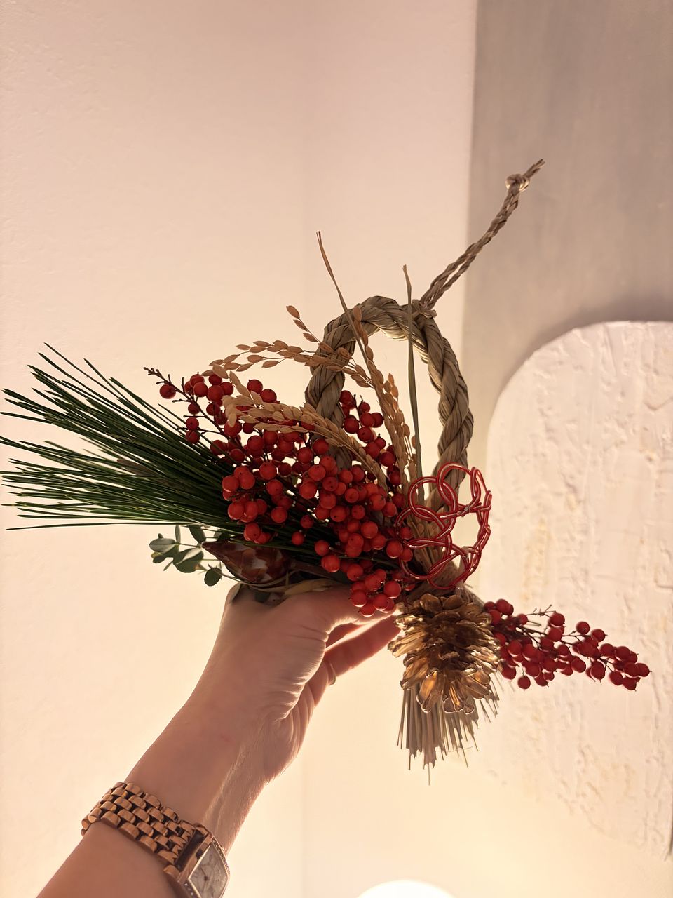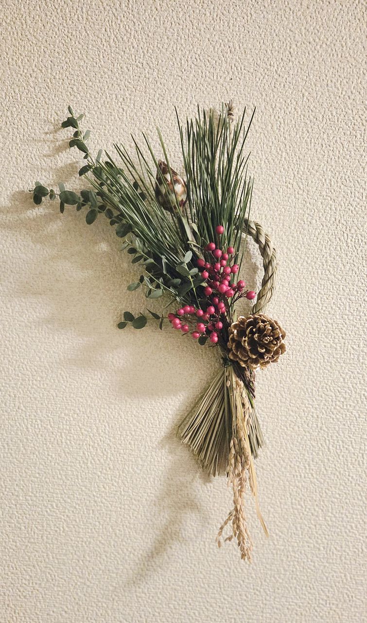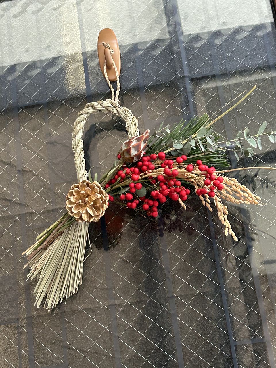 花材を切らずに作りました!おしゃれなお正月飾りが簡単できて嬉しいです😊