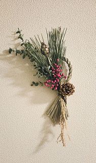 写真には南天が入っているけれど、届いた商品には入っておらず、ユーカリも小さめ。残念です。