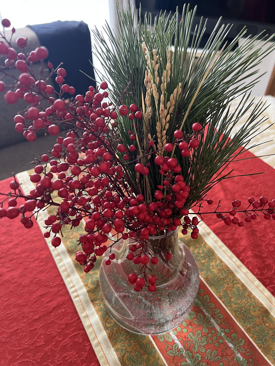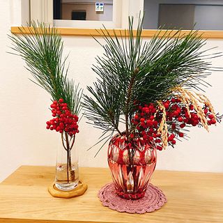南天の赤がとても素敵で新年が幸せで溢れる気がします。 今年も沢山のお花をありがとうございました 。