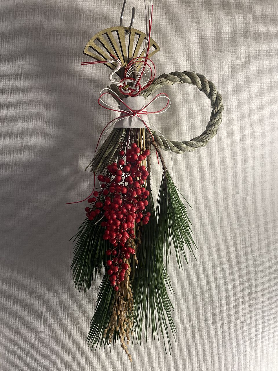 写真より松も南天もボリュームがあり、自分で飾りを足したりして、満足のいく仕上がりになりました
