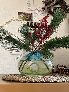 ながもちします! 大きさもボリュームもちょうど良く、おいただけでお正月感🎍🧧 水を入れずに飾ってます!