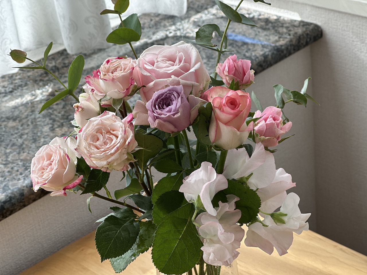 水揚げしたら、元気になり、色のバランスやバラの種類もよかったです。