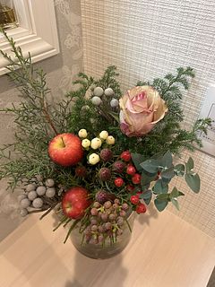 とっても素敵なchristmasらしい花束が 届きました( •ᴗ• )一気にお部屋が クリスマスになりました。