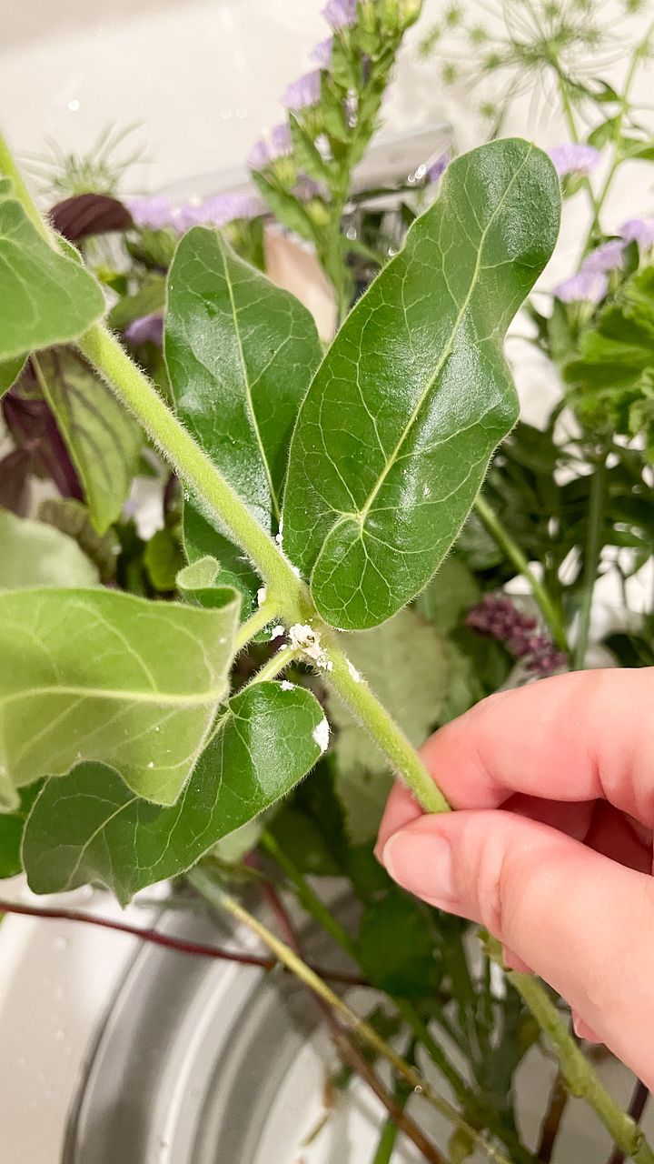 まず茎先をカットし、茎の7〜8割が浸かるイメージで深いお水に数時間つけてあげて。水圧で花に水が届きます。水揚げが完了したら、毎日のお世話は浅水で。水換えは毎日してあげましょう。切花の栄養剤を使うと、バクテリアの増加を減らせるのでおすすめです。