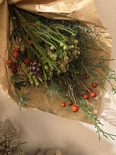 ルビーのようなバラの実がクリスマスらしいポイントに。そのまま吊るしてスワッグにもぴったり。クリスマス気分を長く楽しめます🎄