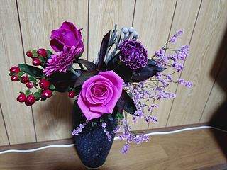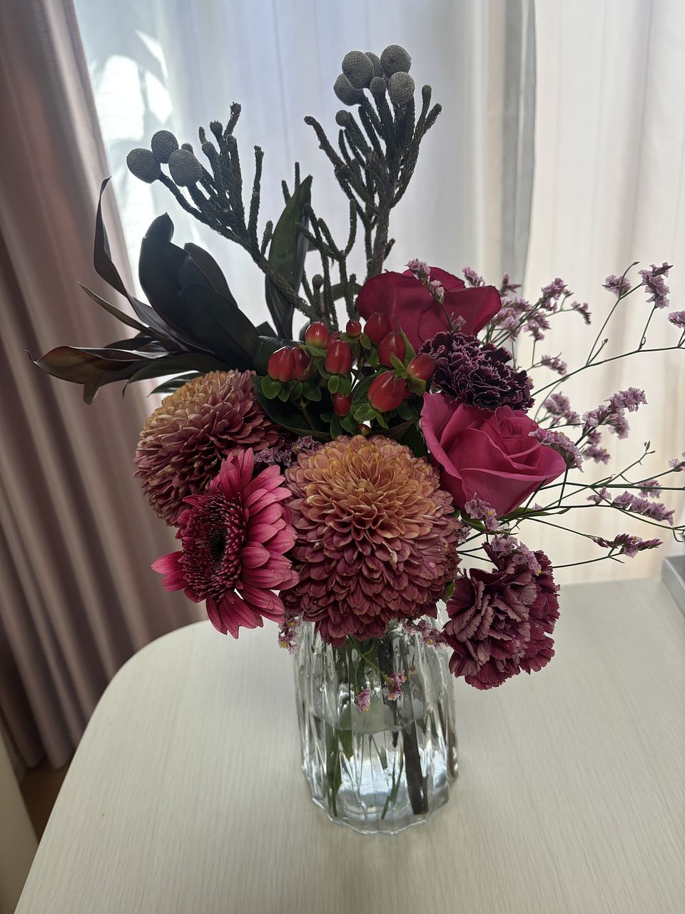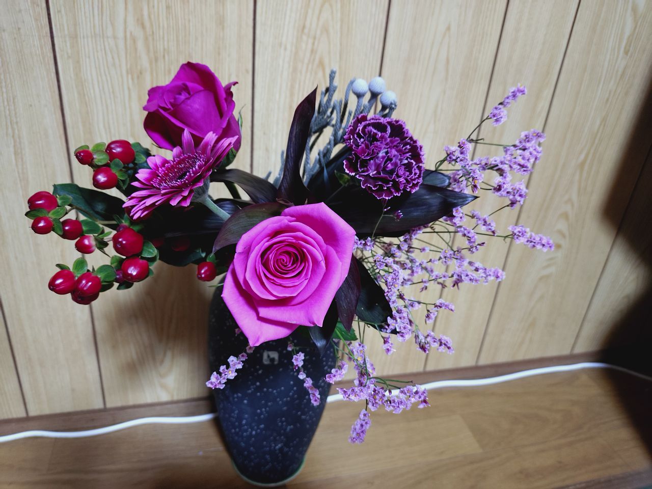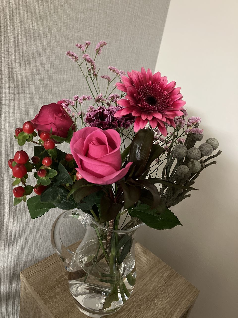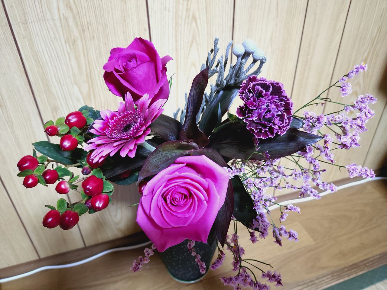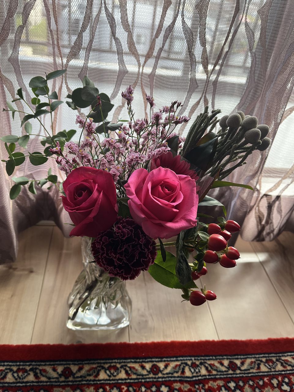父の月命日のために、2回目の注文です。 とってもかわいいなベリー色の花束でした。お花が長持ちしてくれるように願っています。 来月はどんなお花を頼もうかと今から考えています。 次回もよろしくお願いします😊